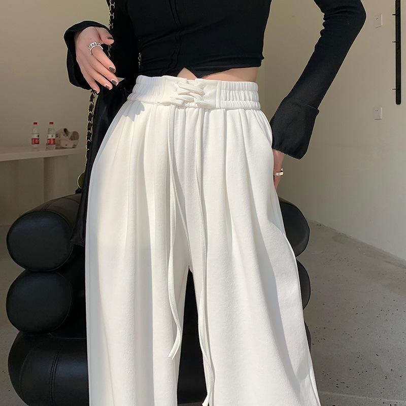 小个子春秋别致阔腿裤韩版新款运动休闲运动裤高腰垂感直筒裤
