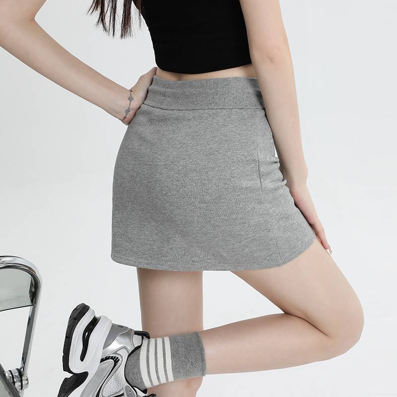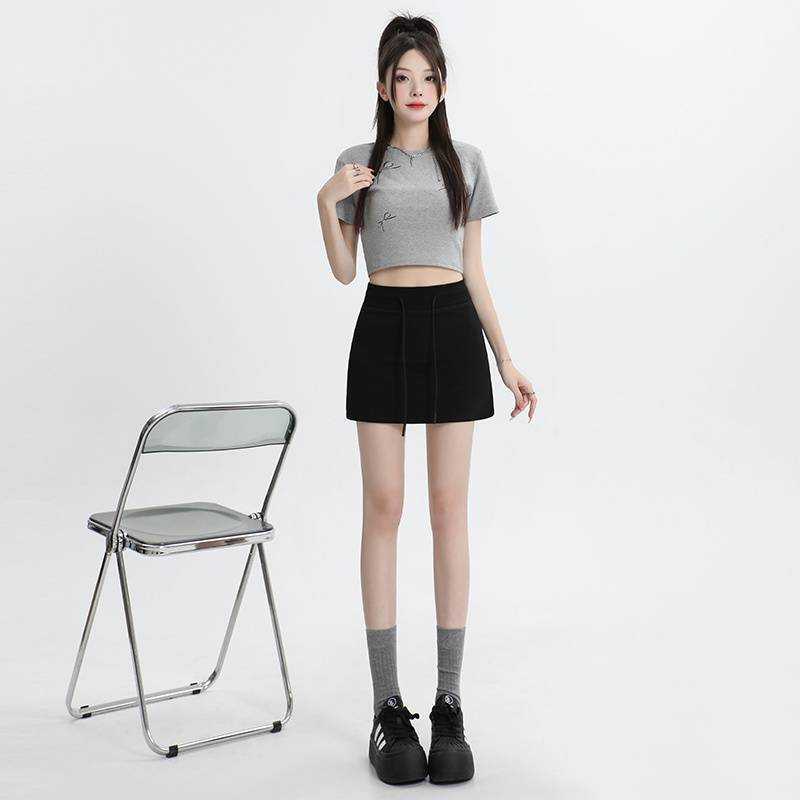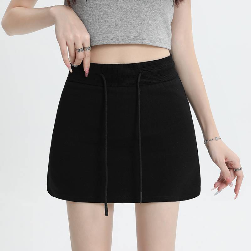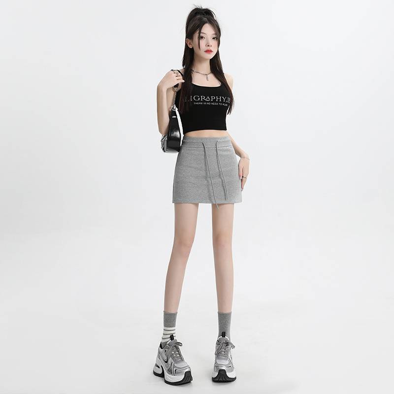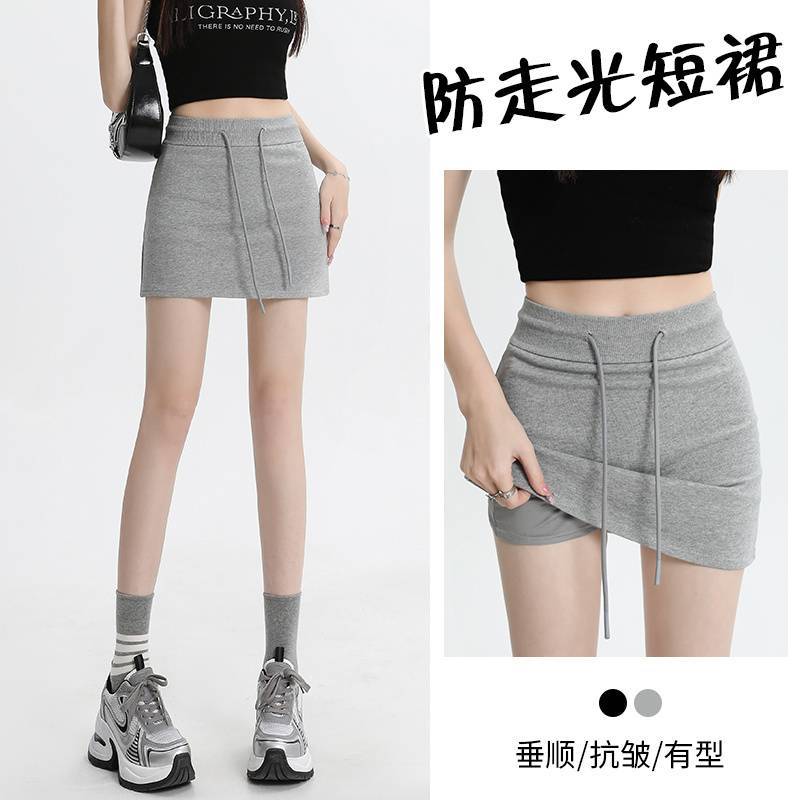 辣妹抽绳半身裙夏季新款高腰显瘦包臀A字灰色小个子运动短裙