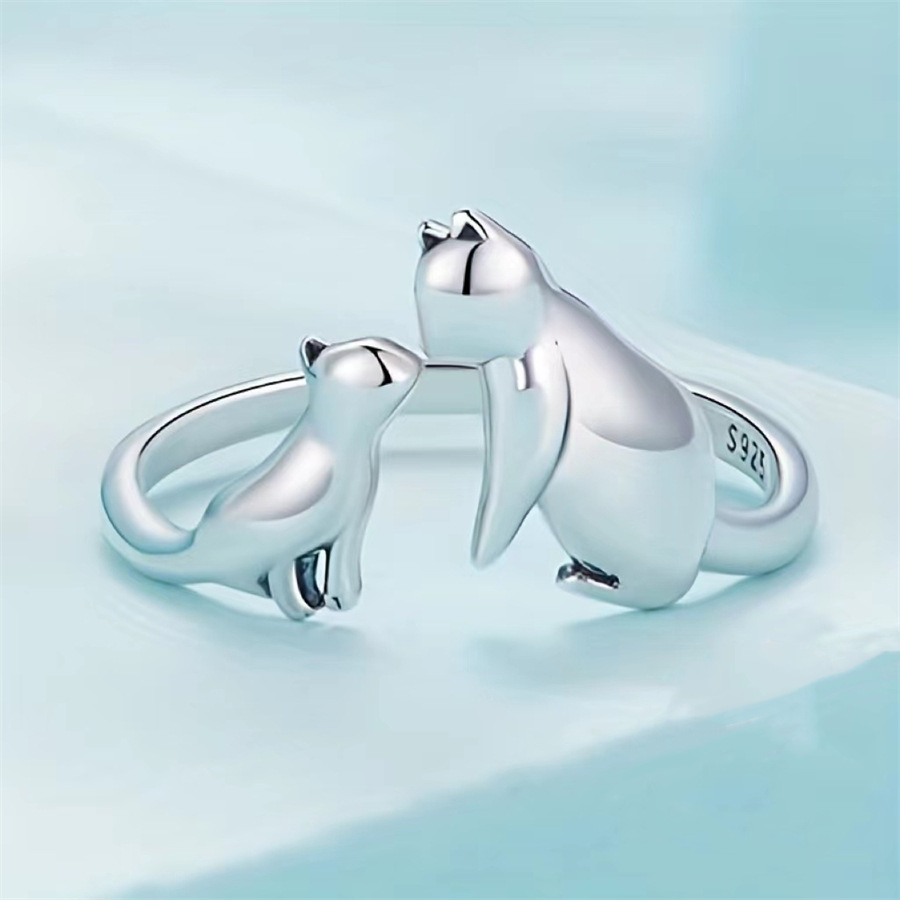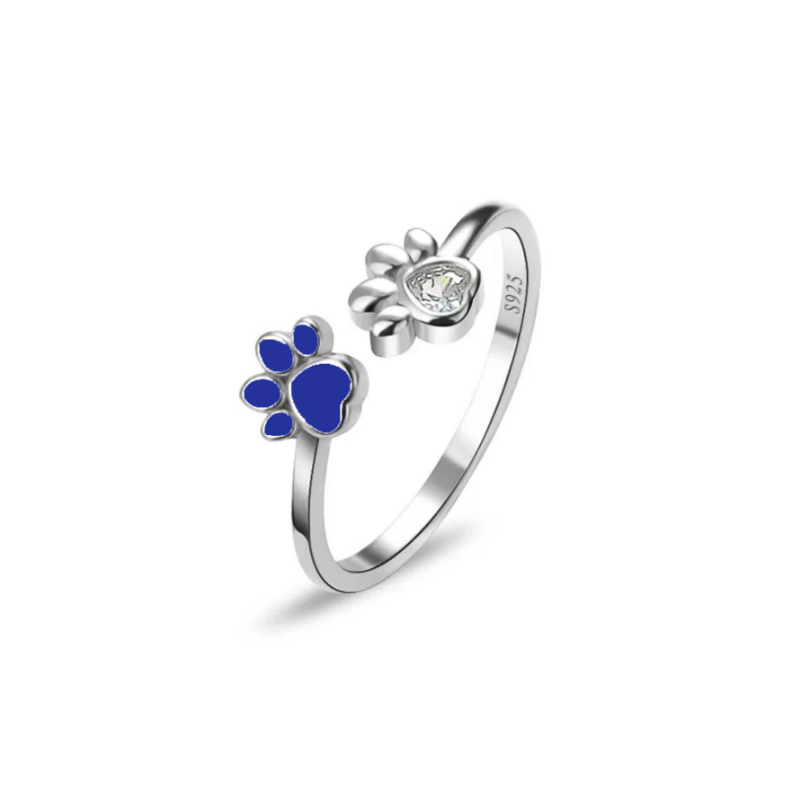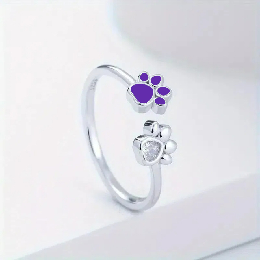 925S纯银小众个性戒指可调节猫爪滴油粉色低过敏女士开口时尚戒指