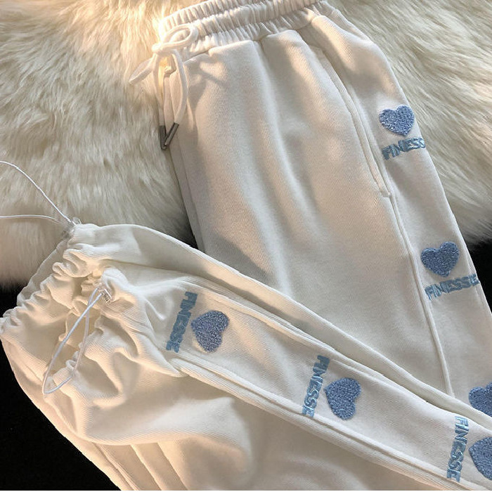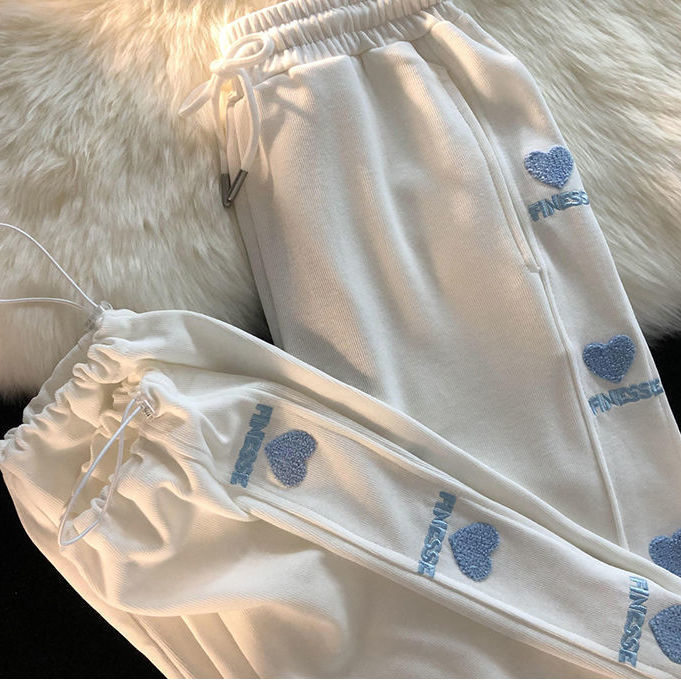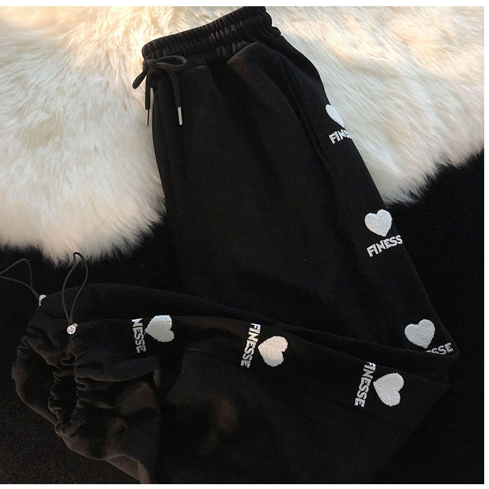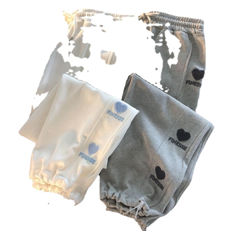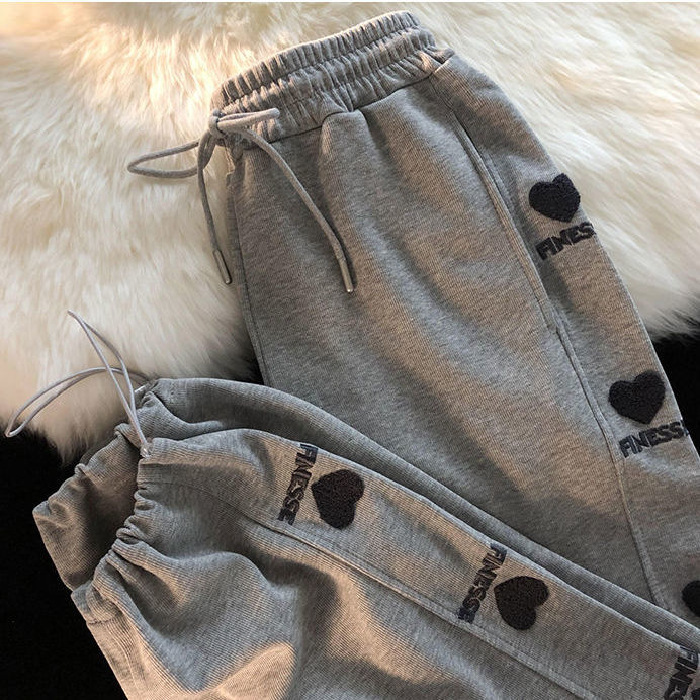 6535米妮棉高腰阔腿裤秋季薄款爱心灰色裤子女束脚卫裤运动裤休闲