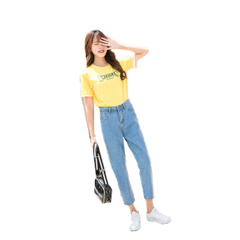 秋装新款宽松牛仔裤女九分裤高腰显瘦bf风阔腿裤直筒哈伦裤