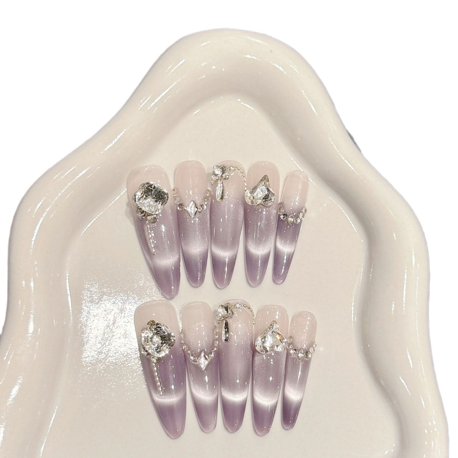 艺禾【紫玉瑶光】纯手工爆款4.0穿戴美甲猫眼高级感美甲贴片批发