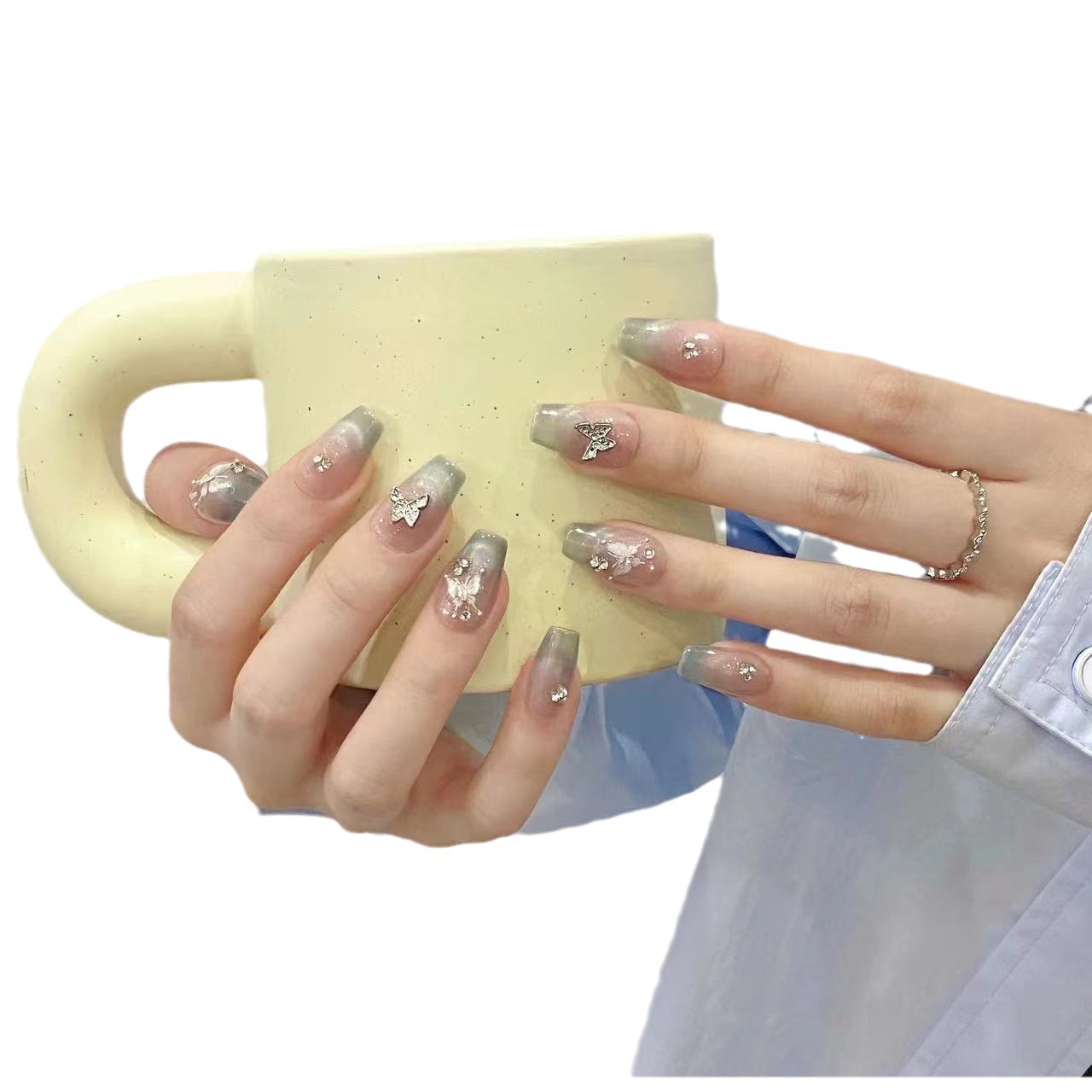 新款纯手工穿戴甲法式猫眼蝴蝶手作镶钻成品高级感指甲贴片