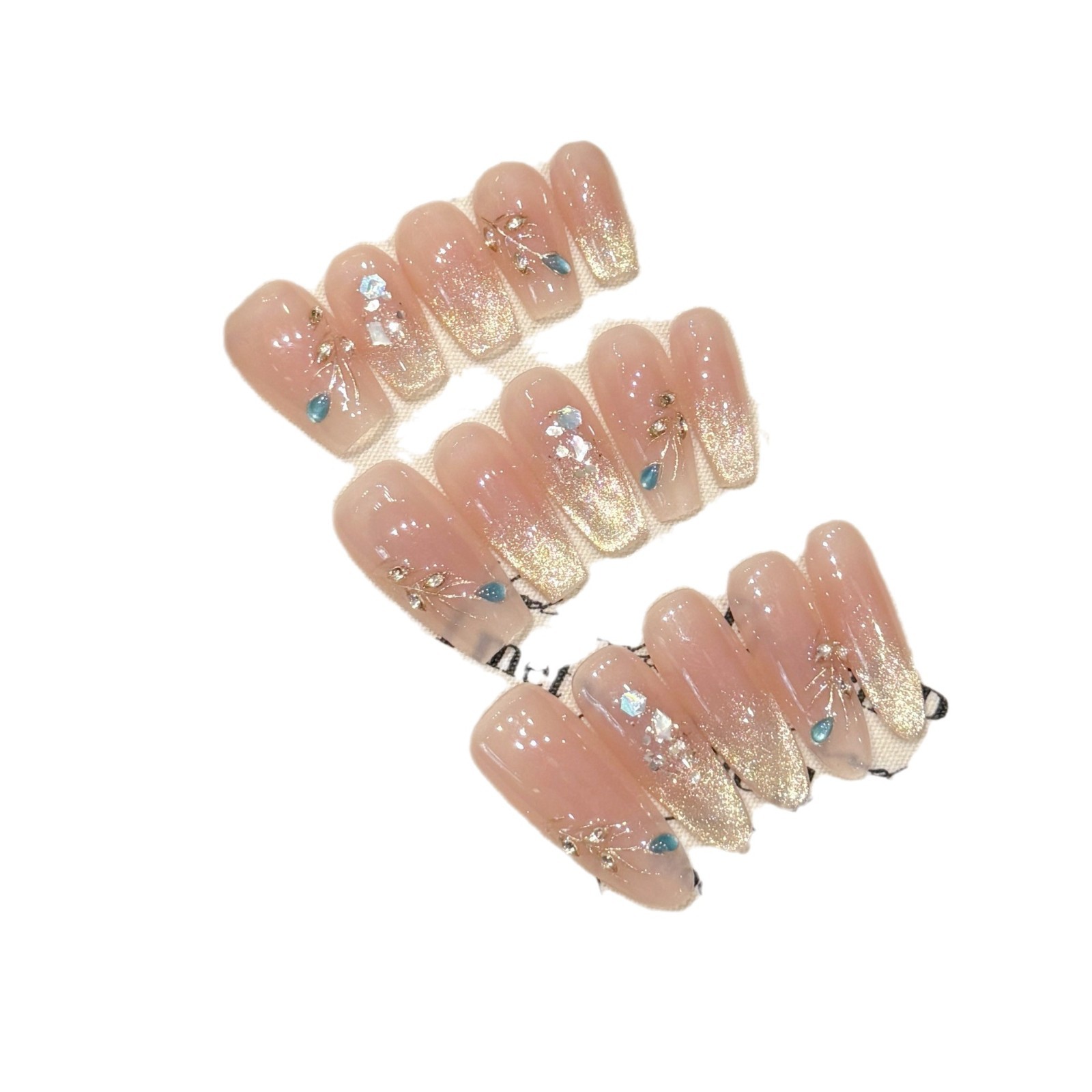 艺禾 腮红渐变猫眼孔雀羽毛清冷贝母高级感爆款显白光疗穿戴甲