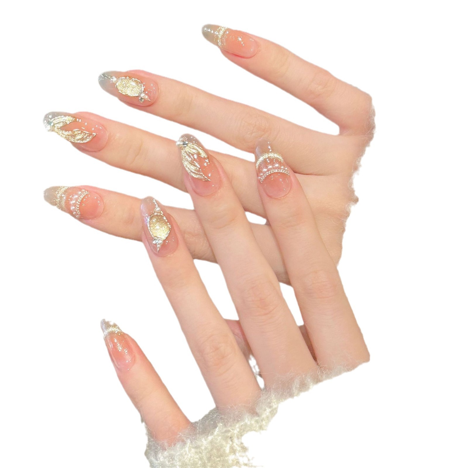 艺禾 鎏金鱼尾腮红渐变珍珠人鱼姬法式微笑猫眼气质手工穿戴甲