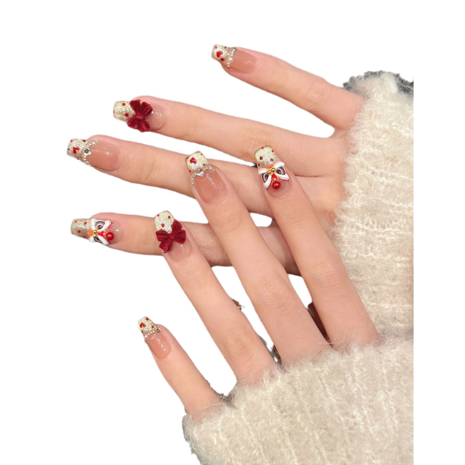 【艺禾-心悦醒狮】爆款新年甲显白猫眼手工穿戴甲醒狮蝴蝶结美甲