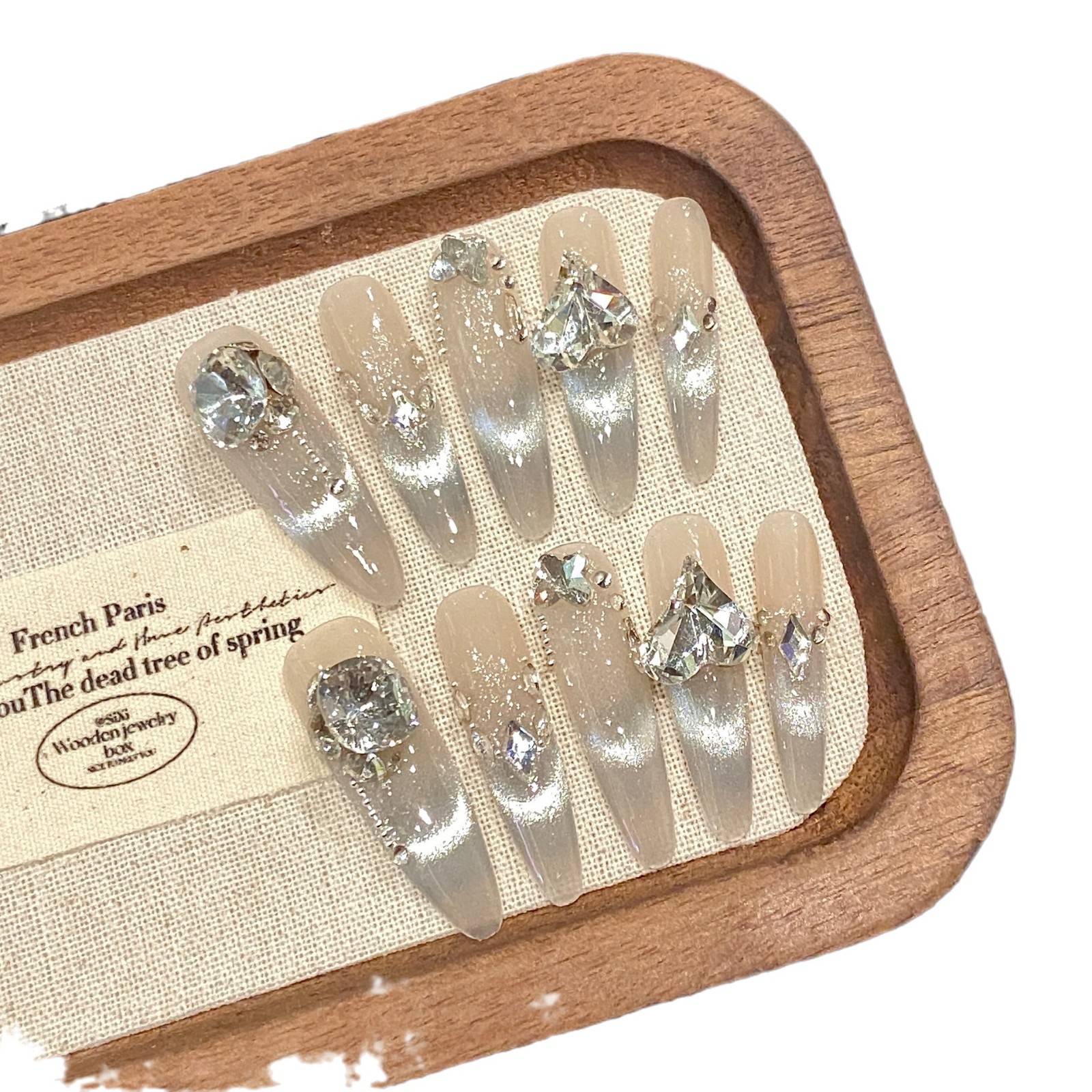 艺禾美甲 轻奢高级氛围璀璨歪心钻微笑法式猫眼雾里探花穿戴甲