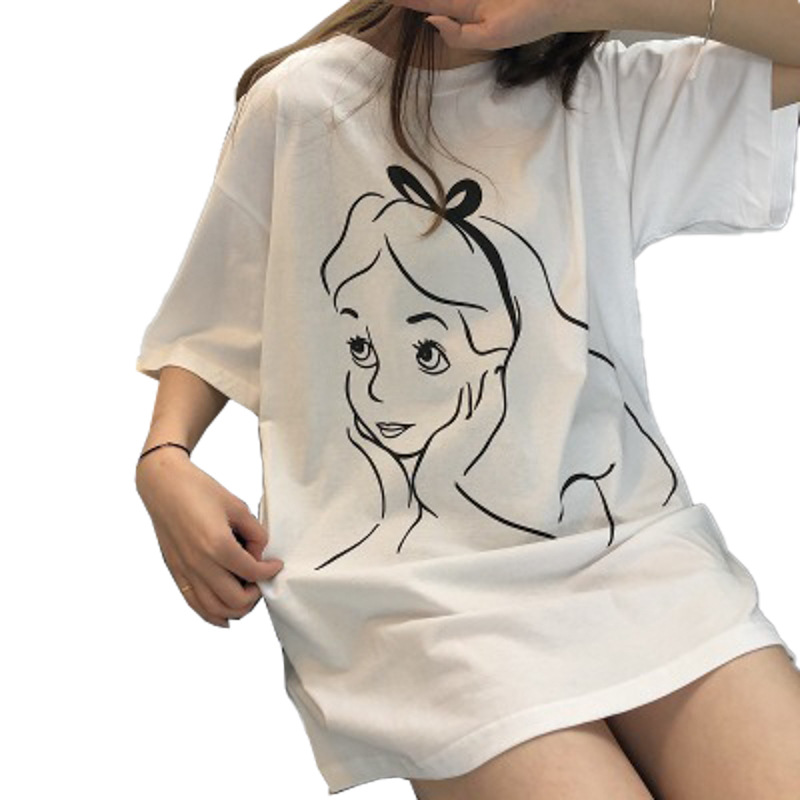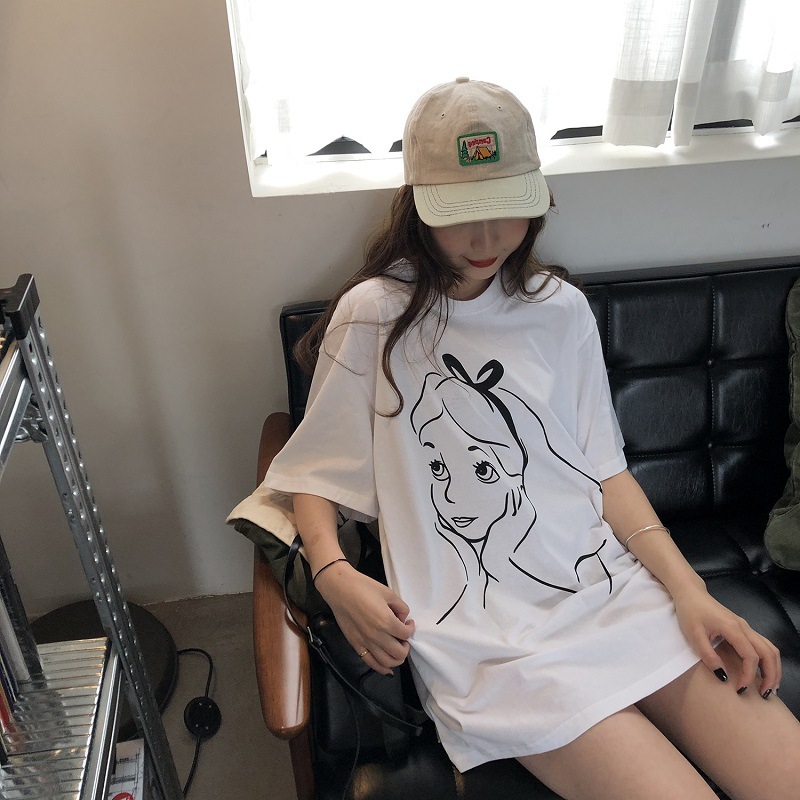 夏季新款韩版印花中长款短袖T恤女学生宽松上衣ins外贸女装潮