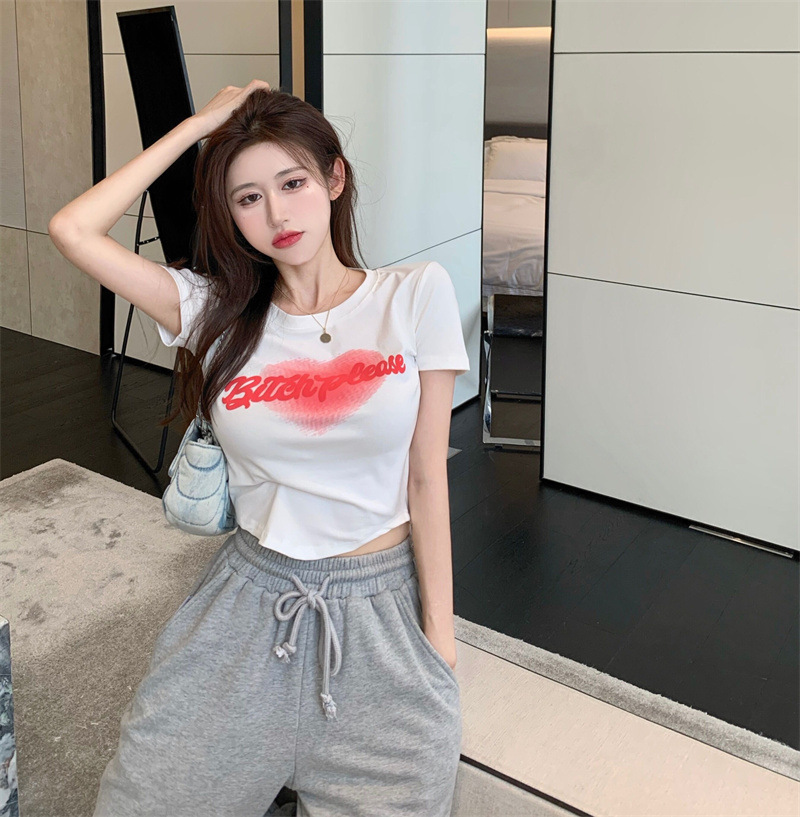 爱心字母印花T恤女装夏季新款ins修身短款设计感小众短袖上衣