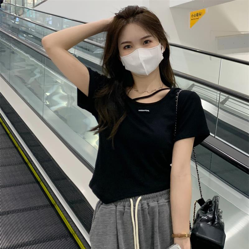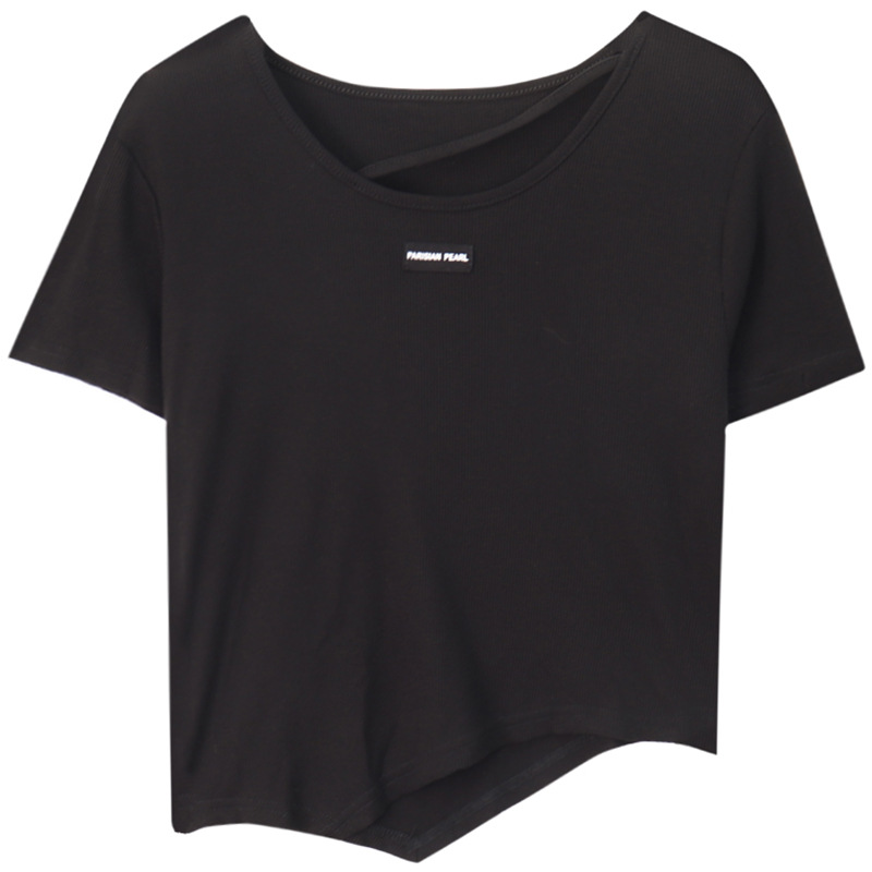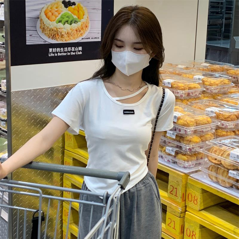 不规则设计感短袖T恤女夏季韩版新款辣妹风纯欲白色打底上衣
