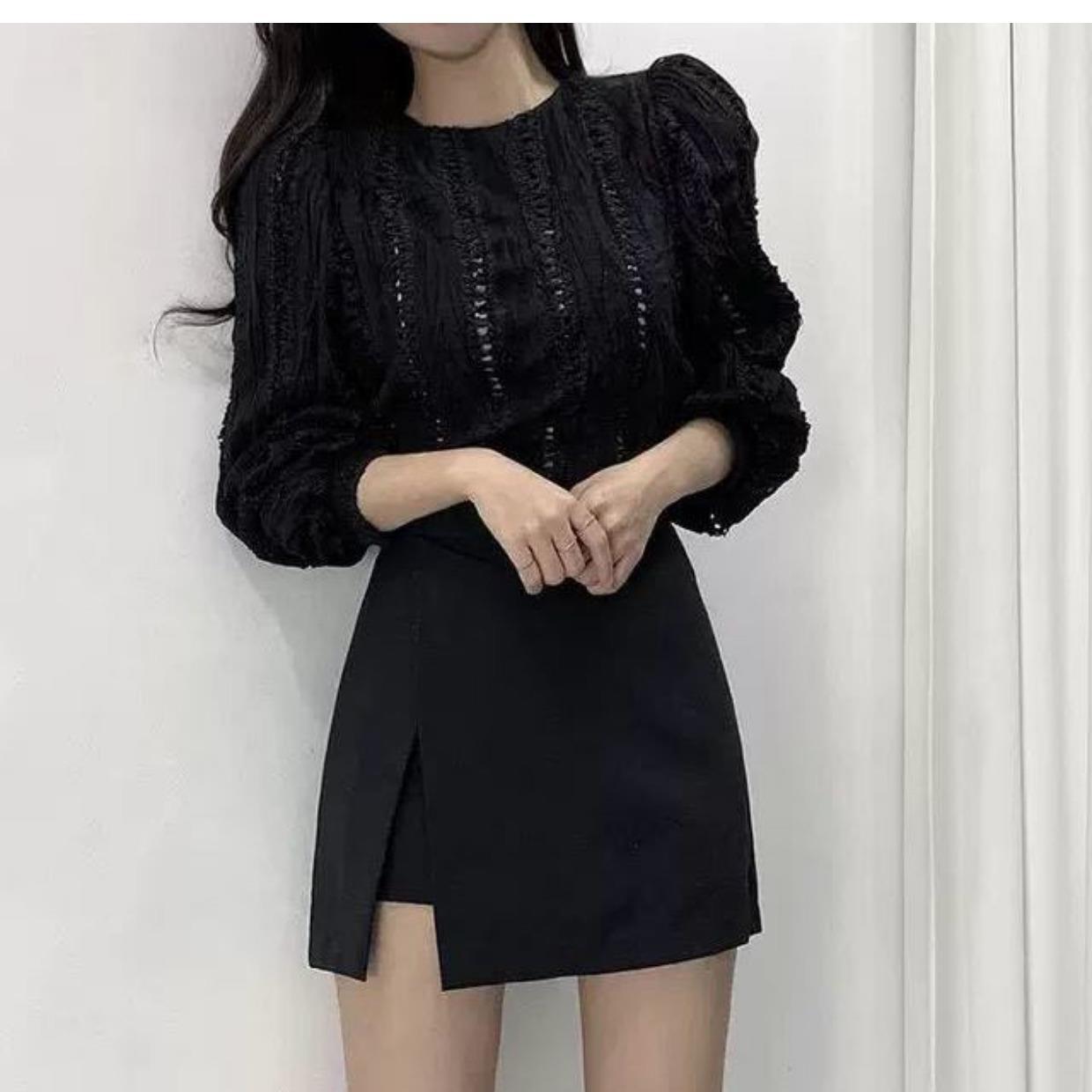 防走光a字包裙半身裙高腰开叉短裙裤裙女夏季黑色职业裙子