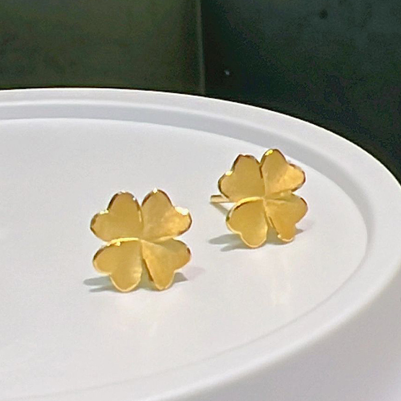 小红书爆款四叶草耳钉女爱心花瓣幸运草耳饰复古磨砂款高级感耳钉