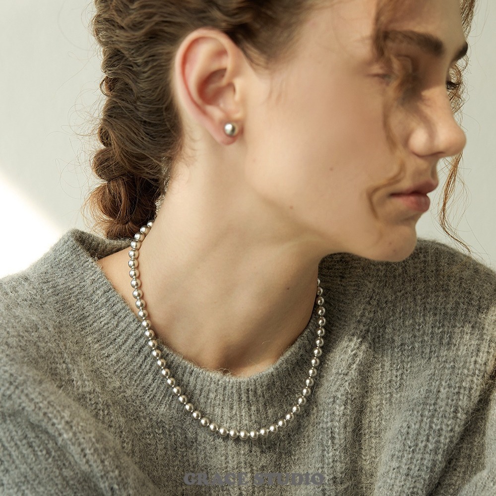 G/S 时髦休闲银灰色施家珍珠项链轻奢高级贝珠叠戴锁骨链真多麻色