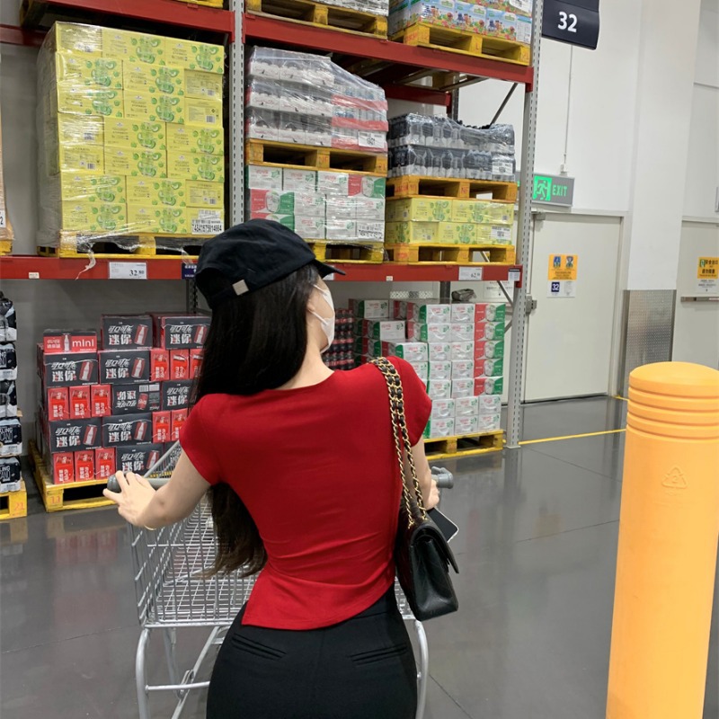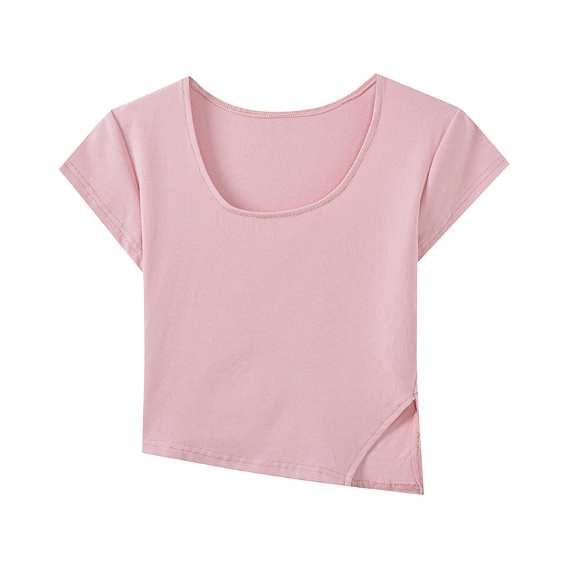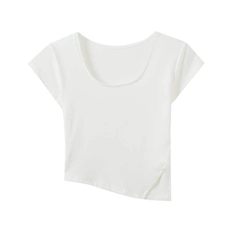 夏季方领短款修身t恤打底不规则辣妹内搭女开叉短袖上衣显瘦