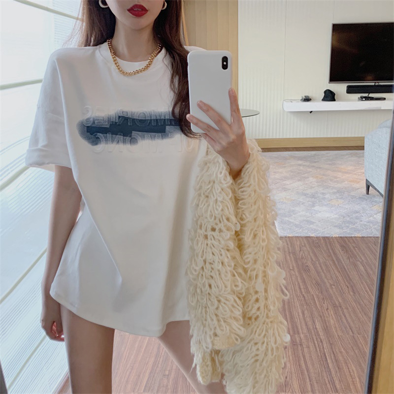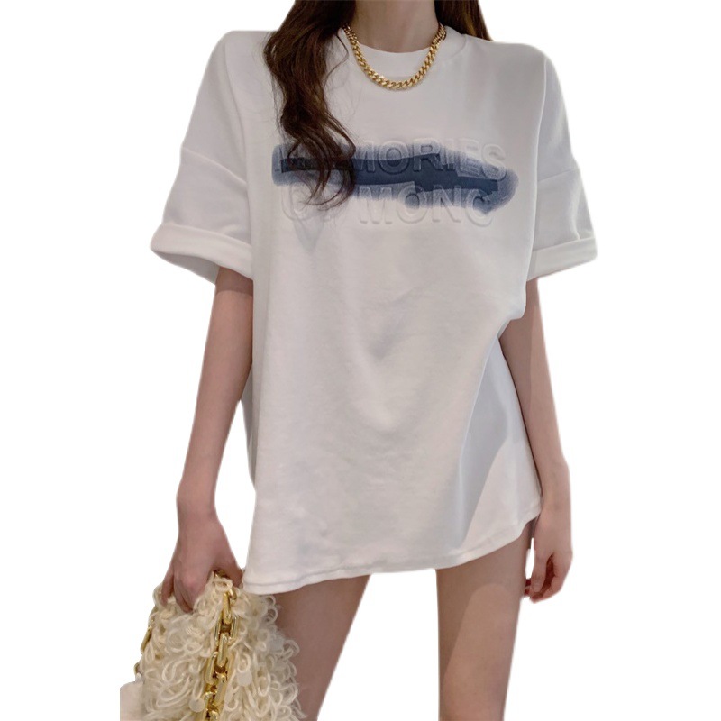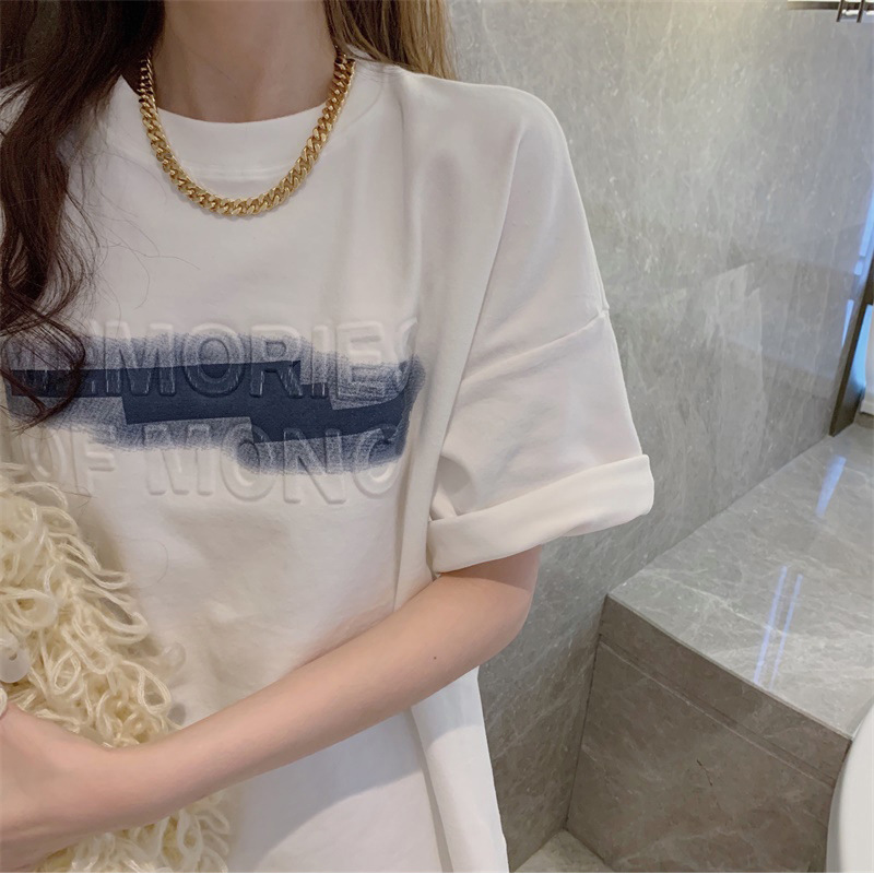 夏季新款白色T恤女中长款宽松韩版短袖上衣女发泡立体印花潮
