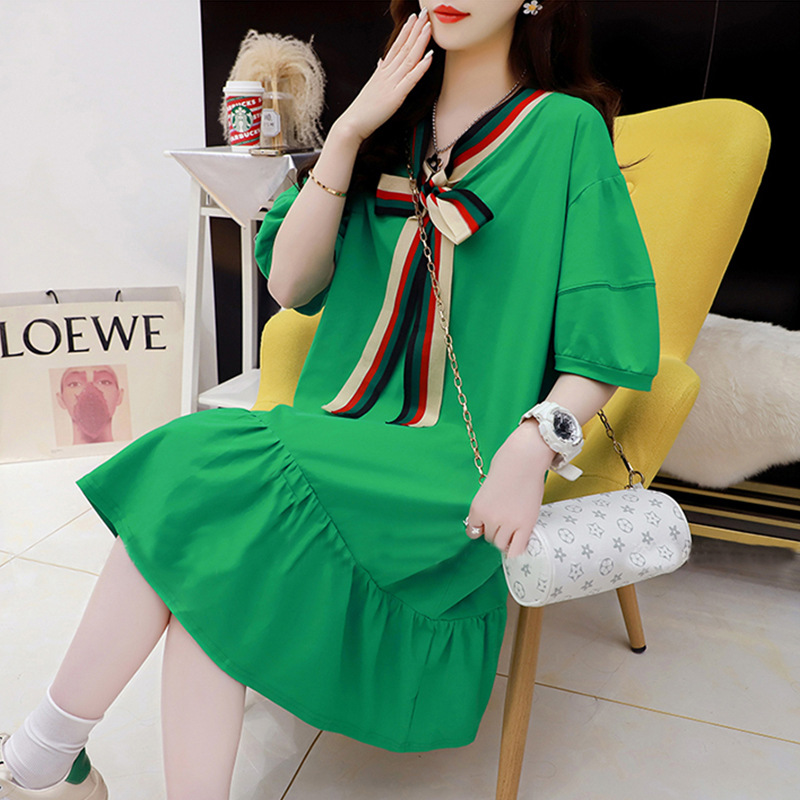 新款短袖t恤女中长款夏季遮肉系带连衣裙宽松大码女装上衣潮