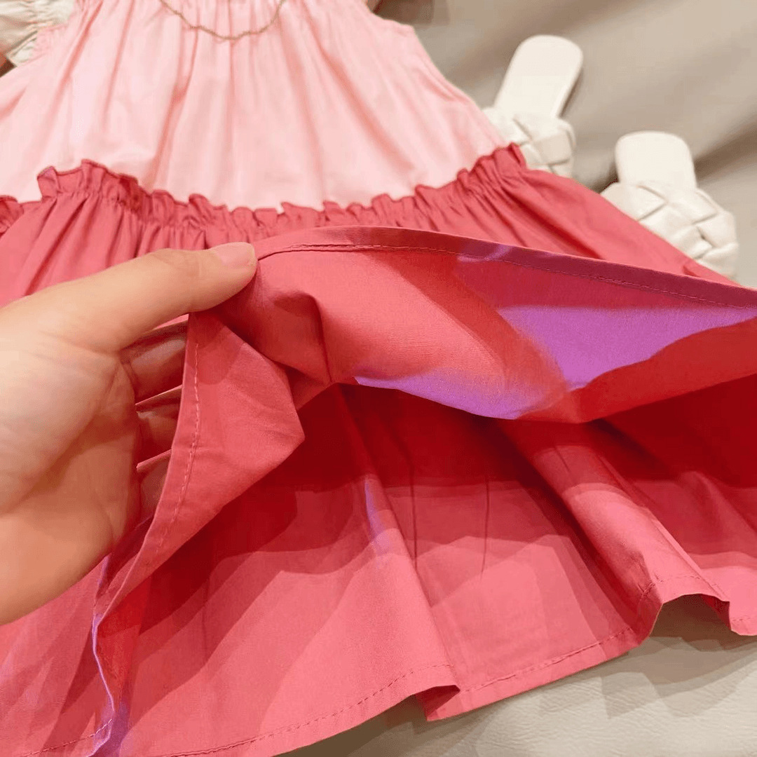 新品女童夏季吊带无袖连衣裙2025夏季新拼接中小童洋气休闲裙子