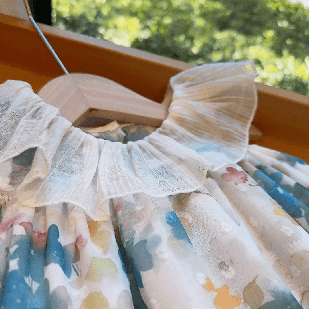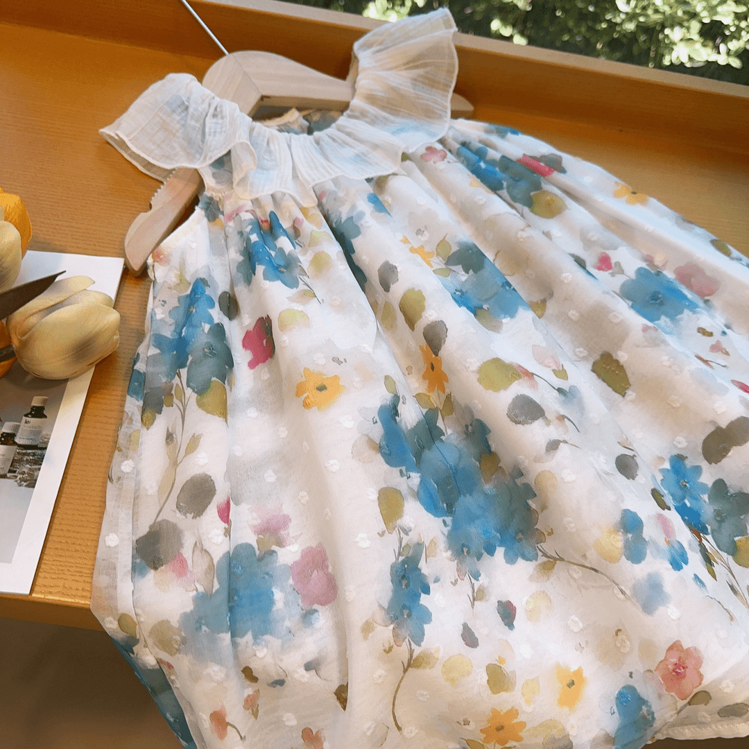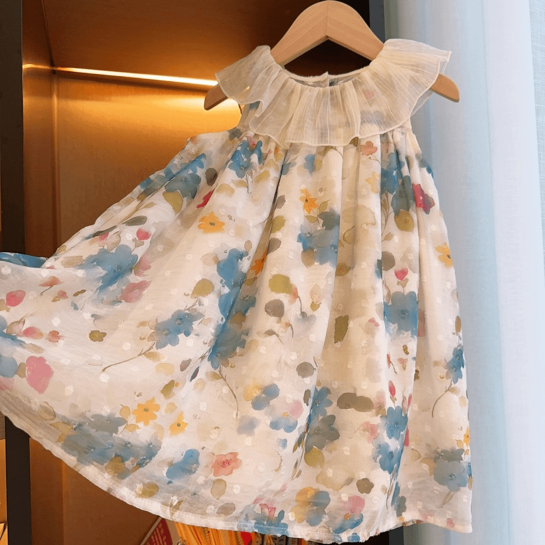 新品2025夏季新款女童连衣裙无袖翻领碎花洋气中小童艺术风背心裙