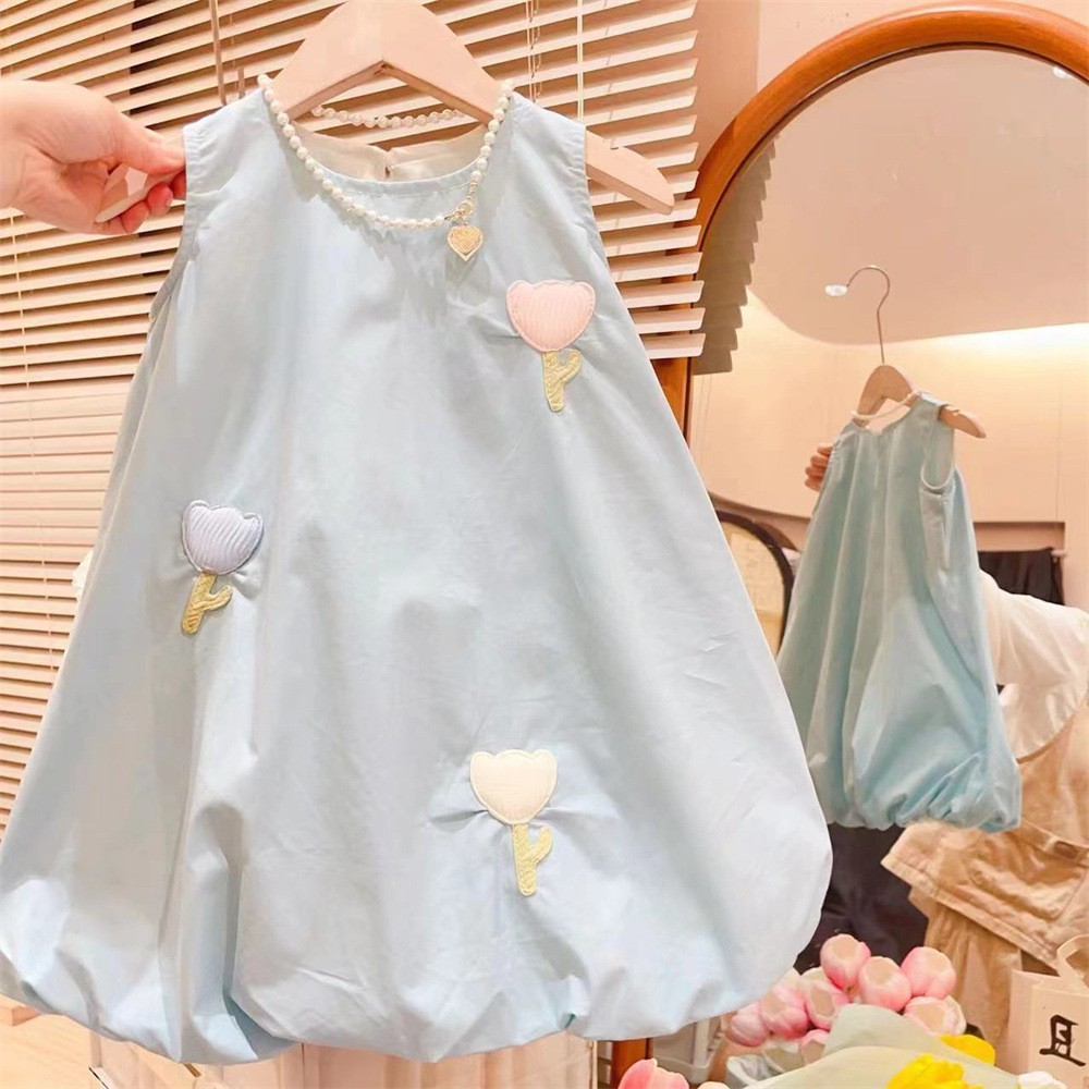 新品女童无袖花苞背心裙2025夏季新款时尚可爱女宝连衣裙