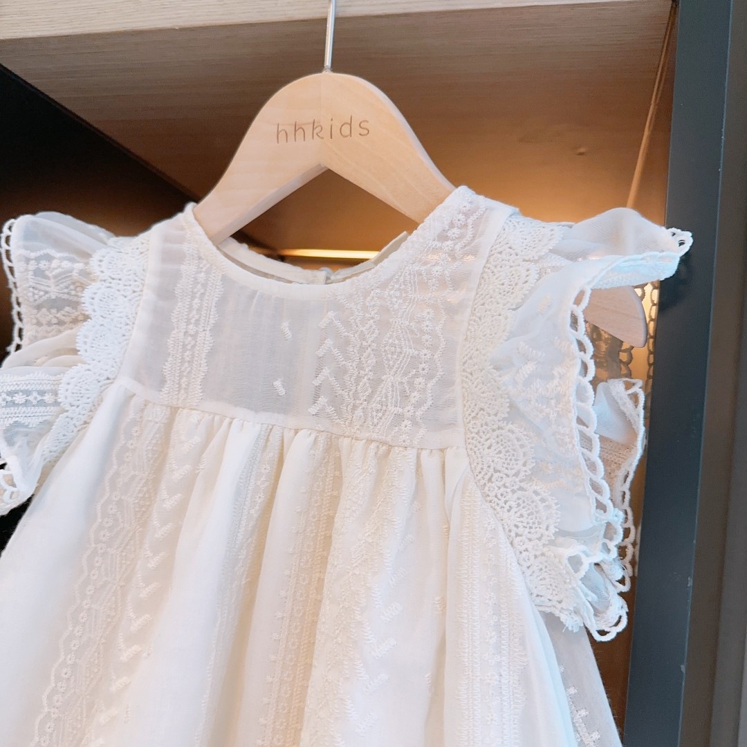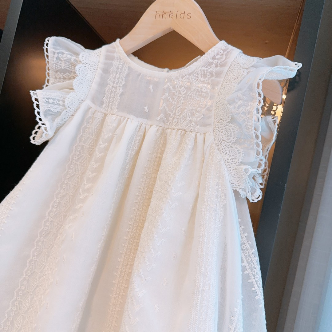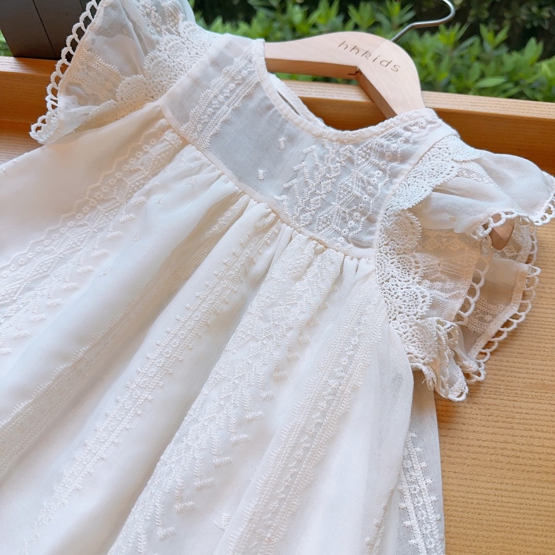 新品女童夏季蕾丝镂空连衣裙2025新款飞袖气质时尚中小童公主裙