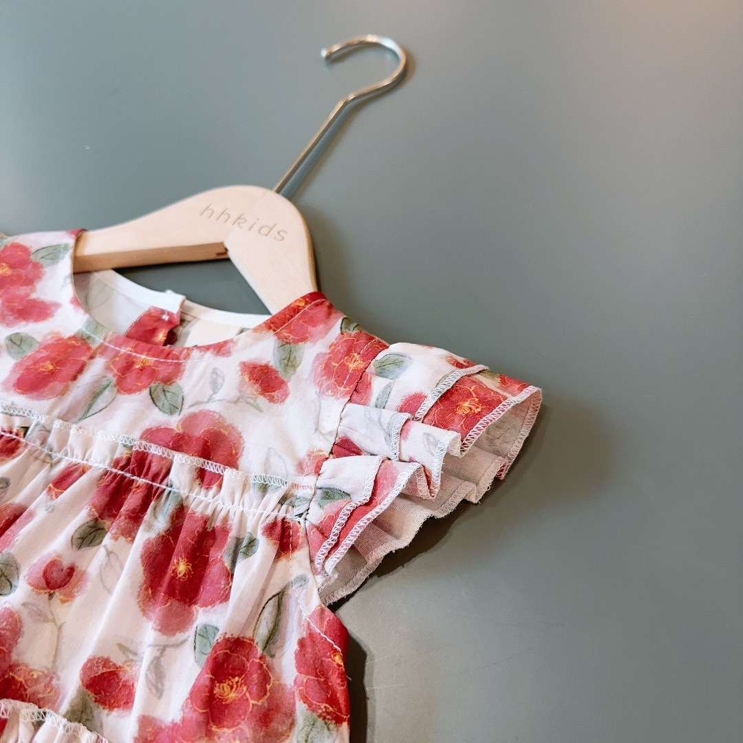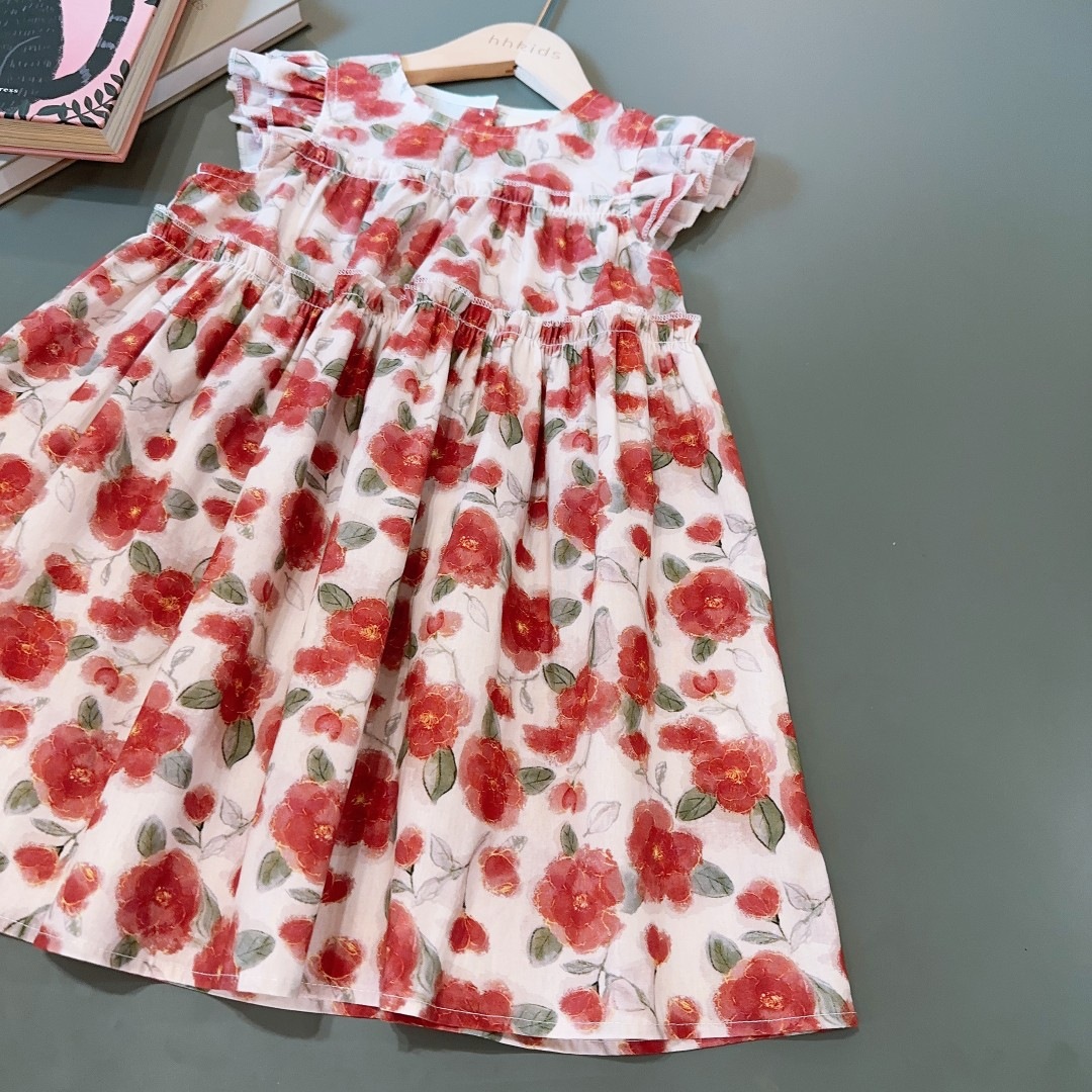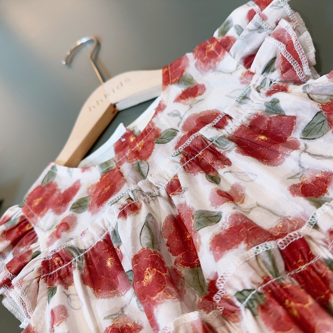 新品2025夏季新款小飞袖连衣裙蔷薇时尚气质拼接娃娃中小童裙子
