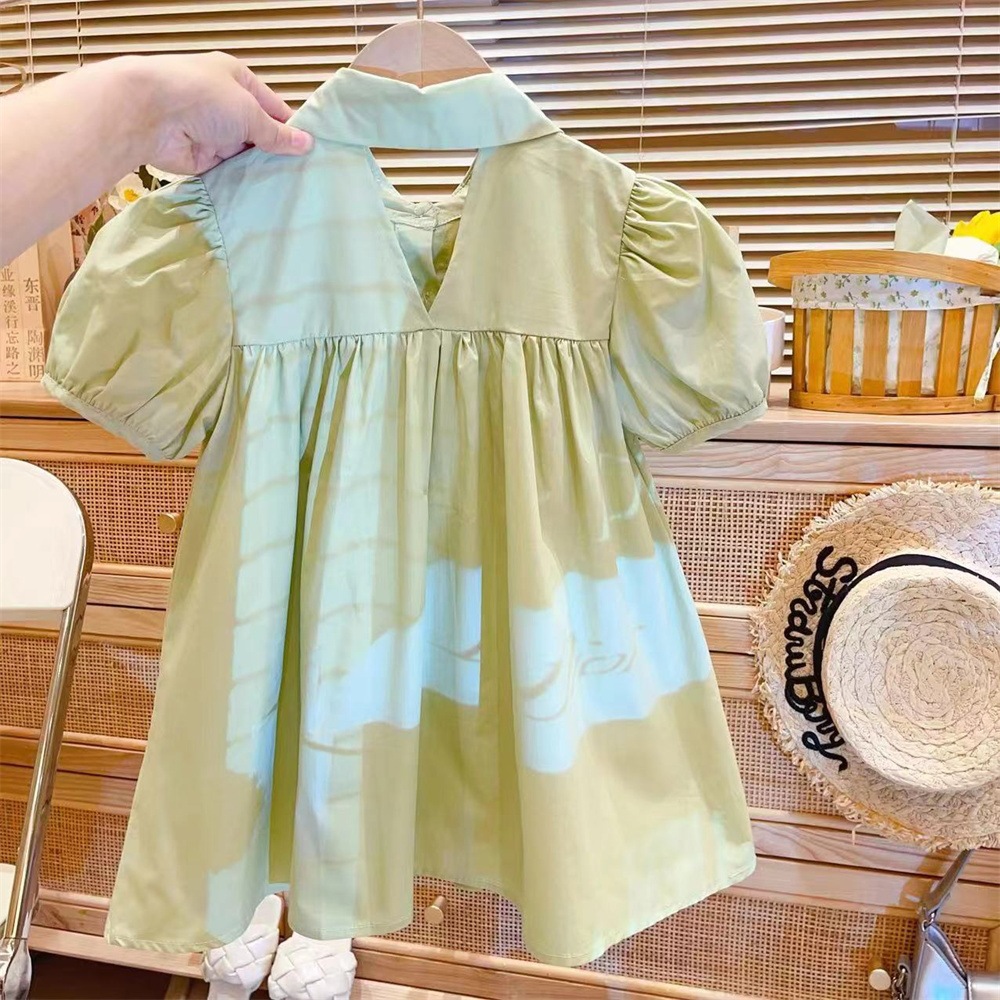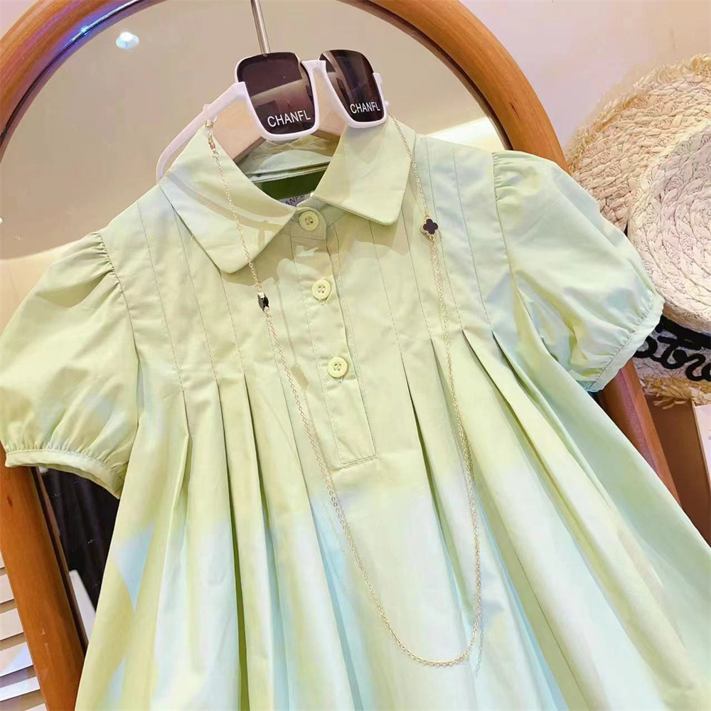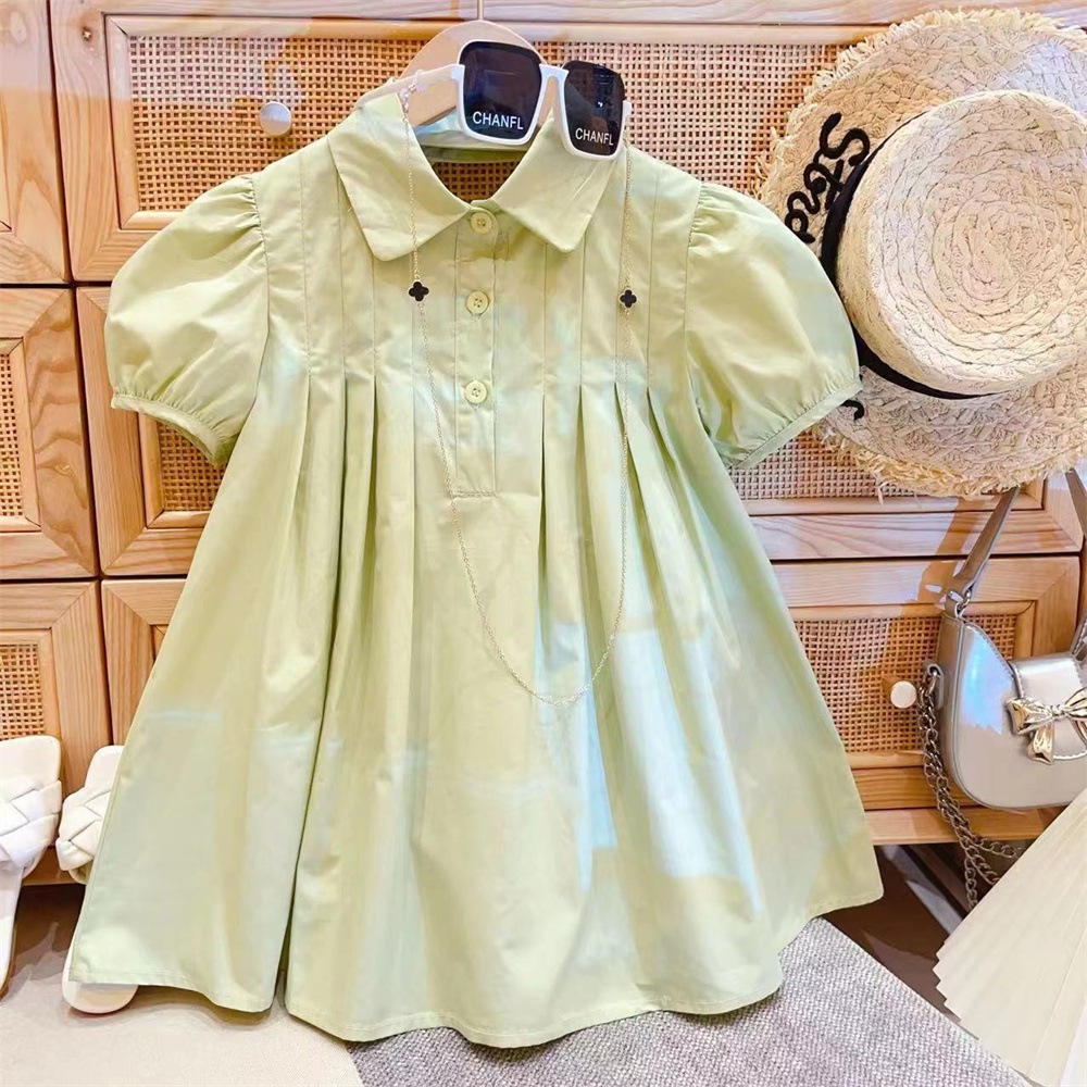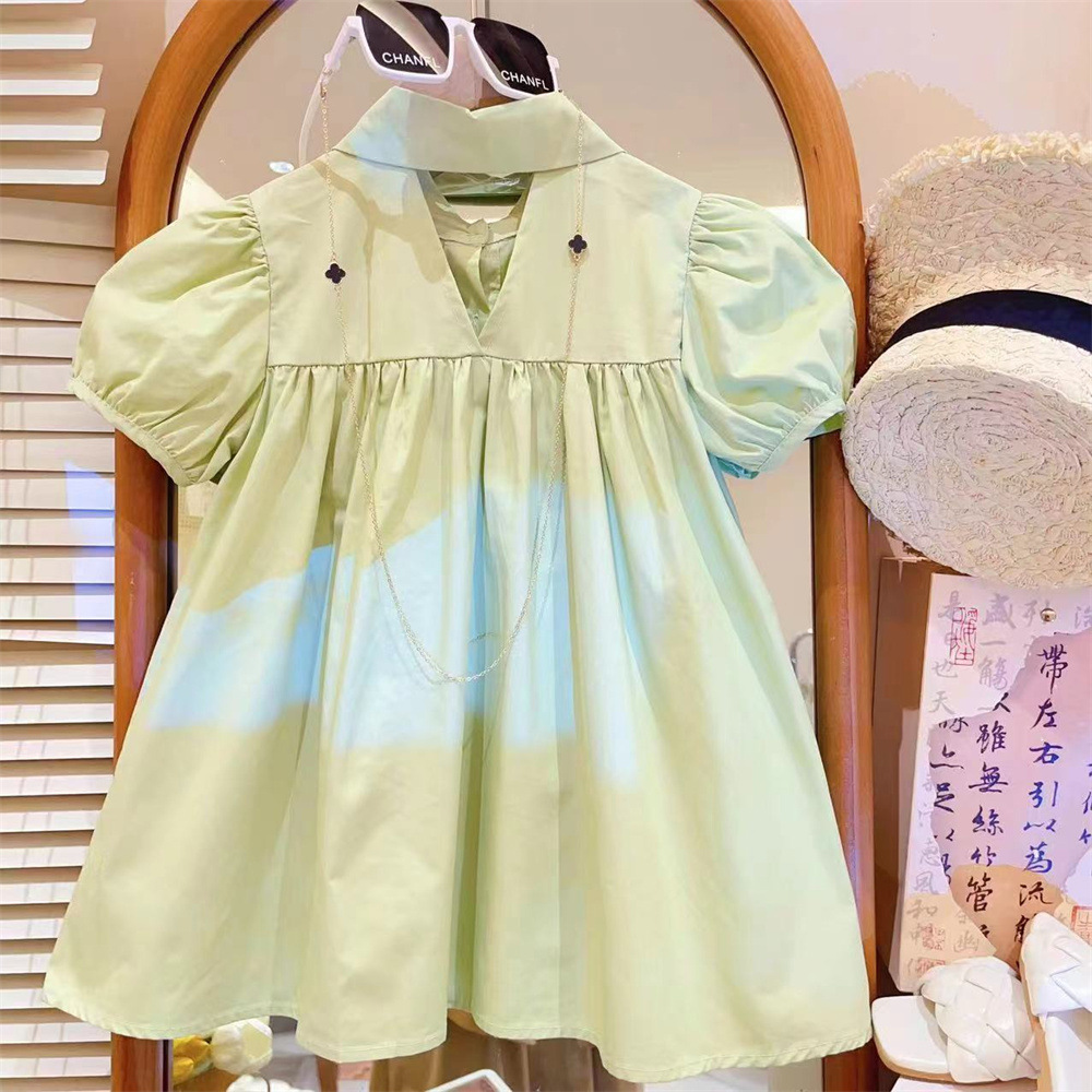 新品泡泡袖女童连衣裙夏洋气2025年新设计感polo领中小童裙子