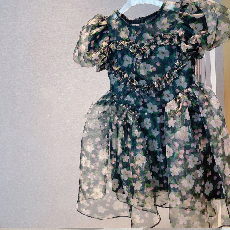 女童泡泡短袖连衣裙2025夏季新款韩版宝宝欧根纱公主裙儿童礼服裙