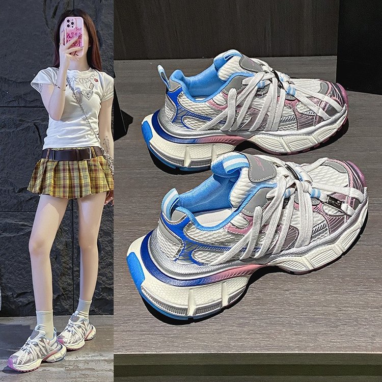 真皮厚底老爹鞋女款2025年夏季新款小众绑带休闲鞋增高轻便运动鞋