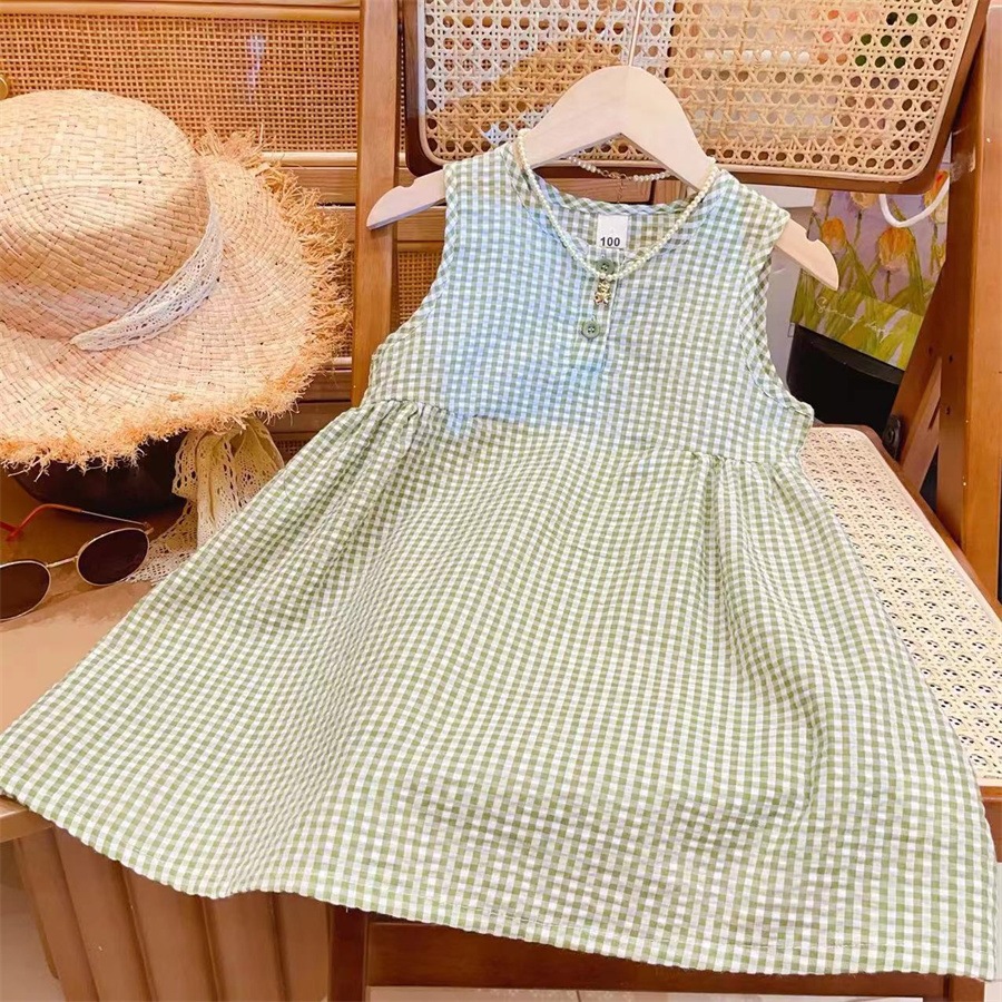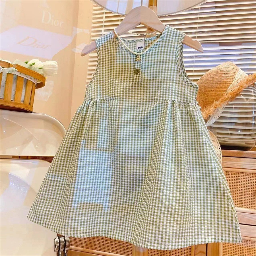 新品儿童连衣裙清新格纹童装2025新款女童时尚无袖中小童公主裙