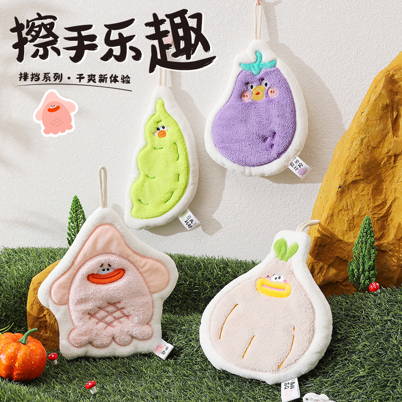 可爱卡通擦手巾悬挂式三层加厚珊瑚绒厨房卫生间擦手速干毛巾手帕