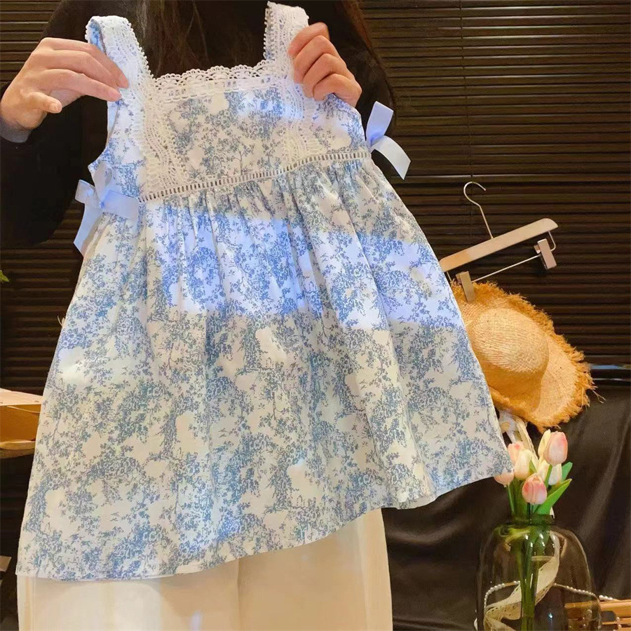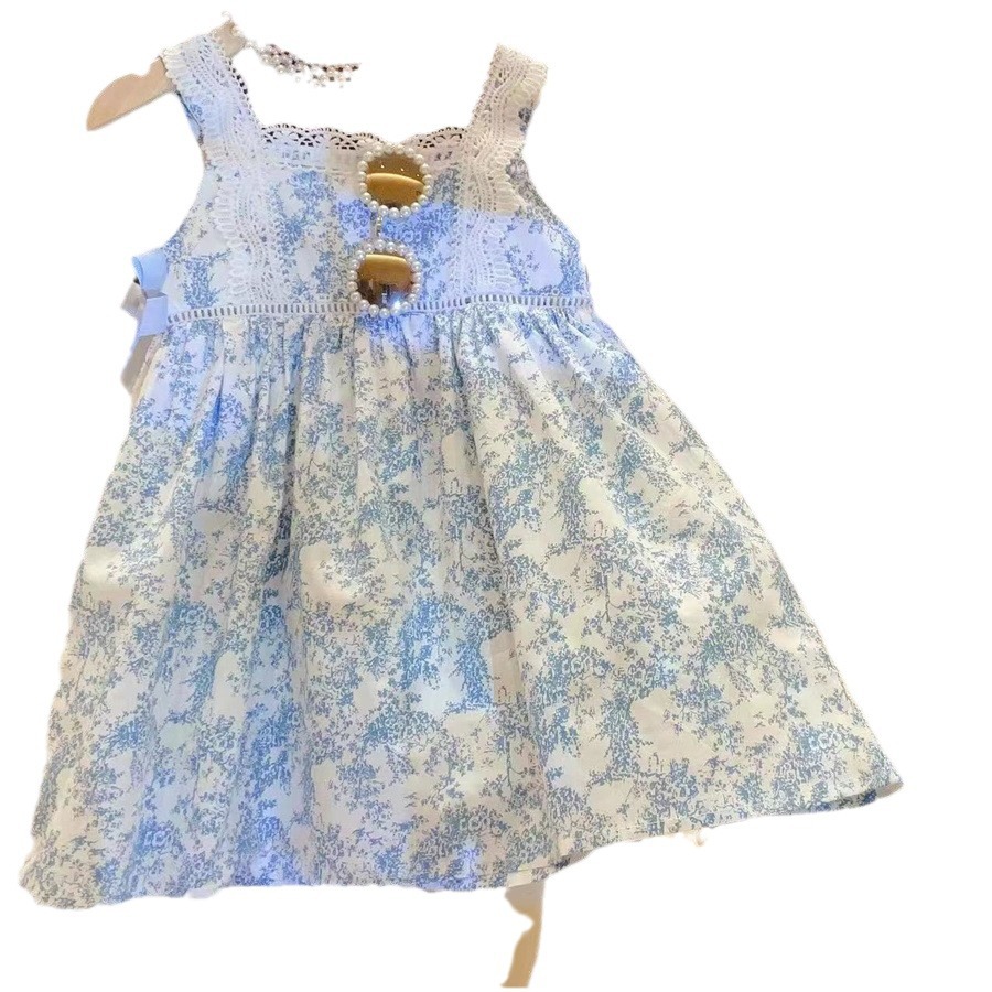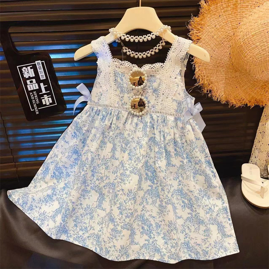 新品女童蝴蝶结背心裙宝宝夏2025蕾丝甜美裙子吊带无袖童装连衣裙