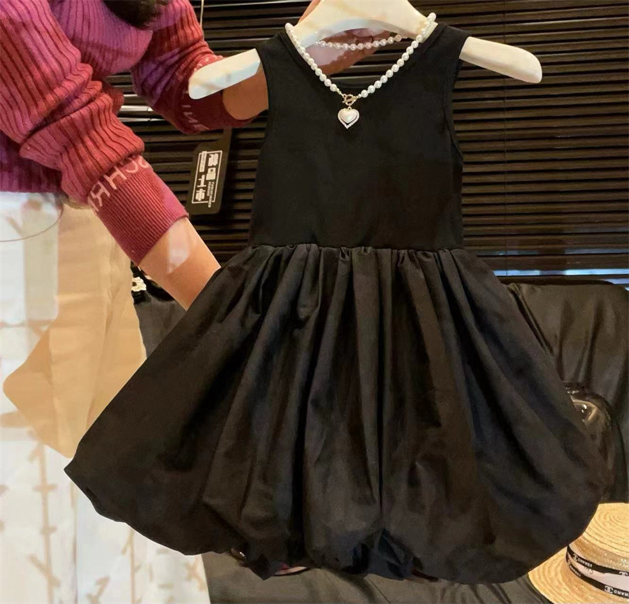 新品女童裙子花苞背心裙赫本风60支仿天丝宝宝蓬蓬裙韩版小黑裙