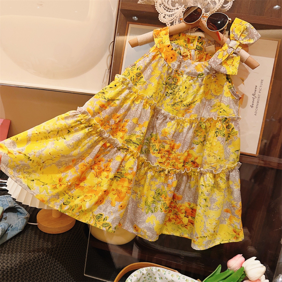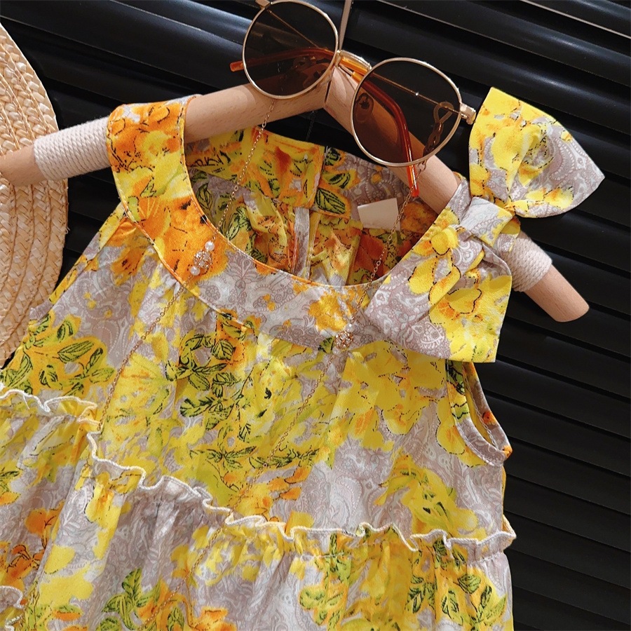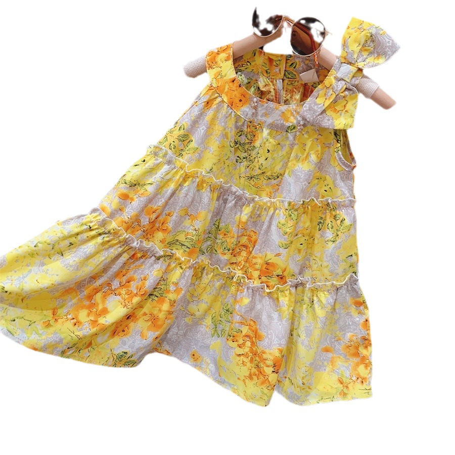 新品女童吊带仙女连衣裙夏海边度假沙滩裙洋气儿童碎花裙