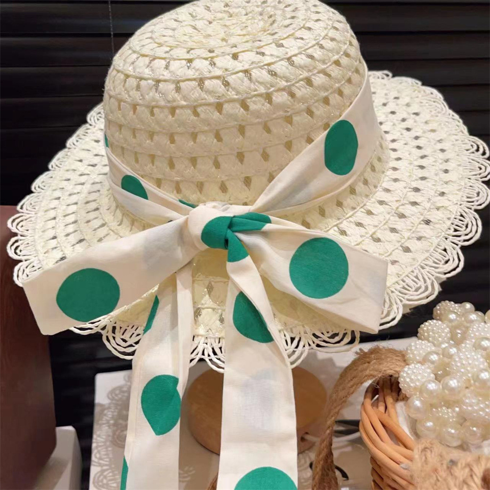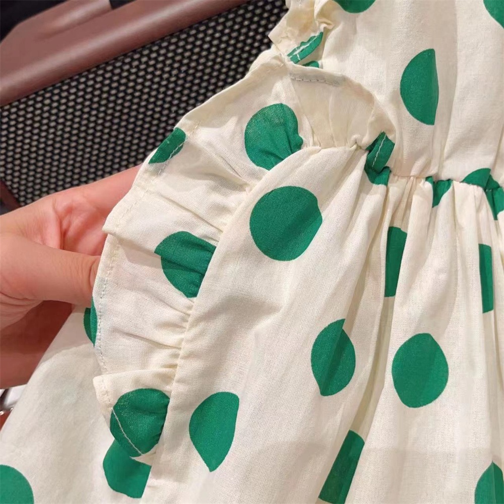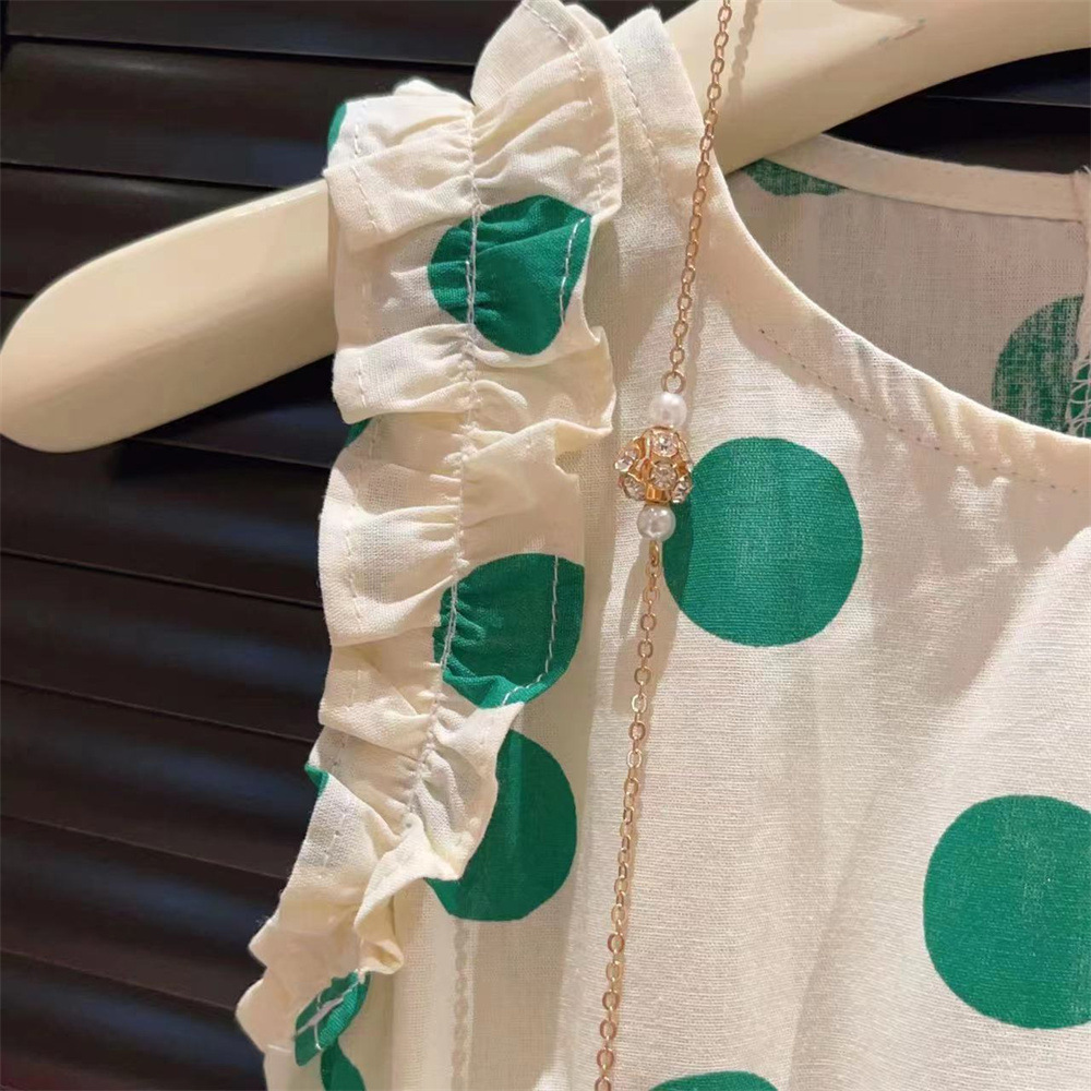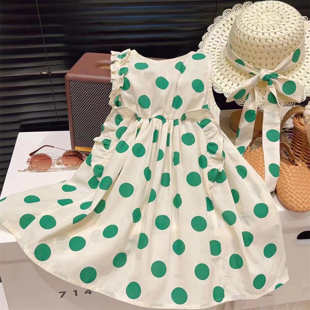 新品女童大波点花边洋气公主沙滩背心裙配同款帽2025夏装