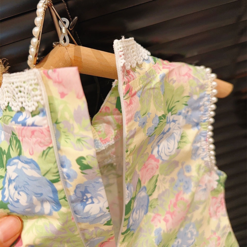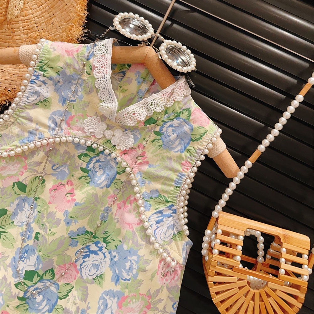 新品女童改良风蕾丝立领复古大花钉珠公主旗袍裙2025夏装连衣裙