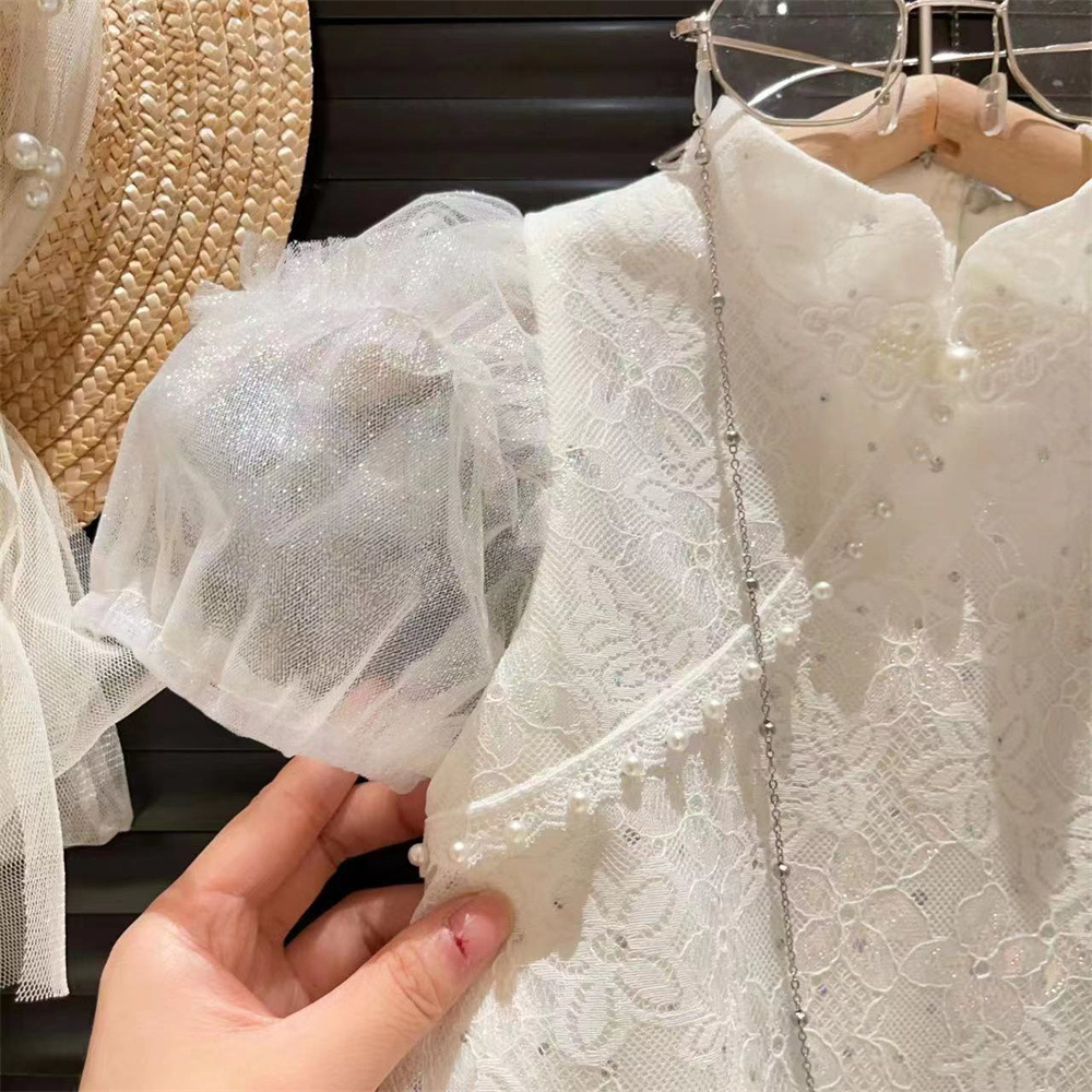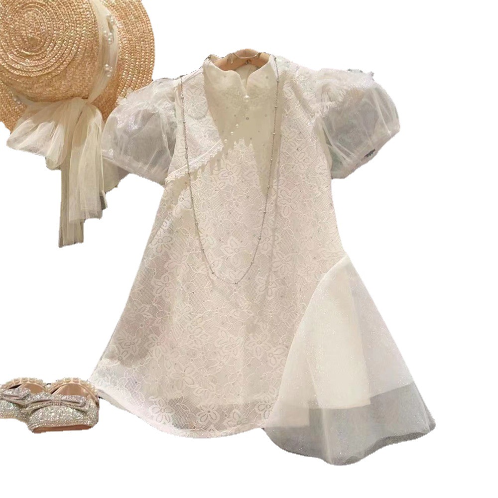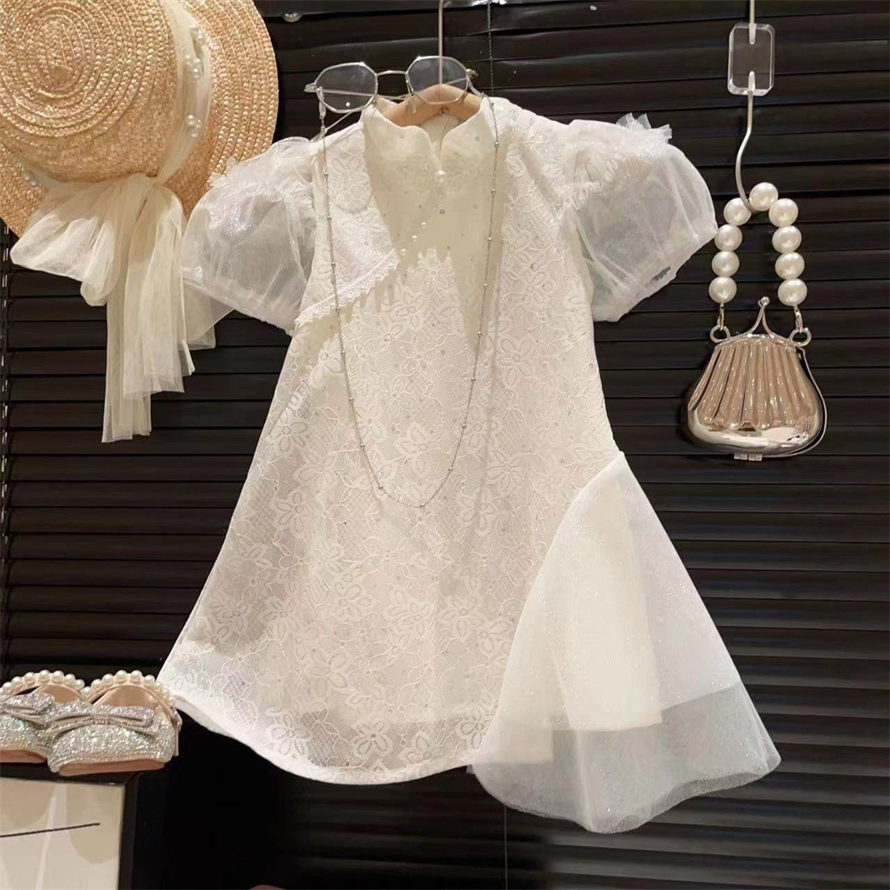 女童国风气质款泡泡袖立领斜盘扣公主旗袍裙新品中小童2025夏装