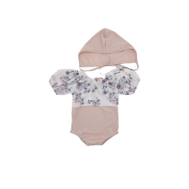 女童泳衣儿童洋气印花2025夏季新款女宝碎花粉色露背可爱连体泳装