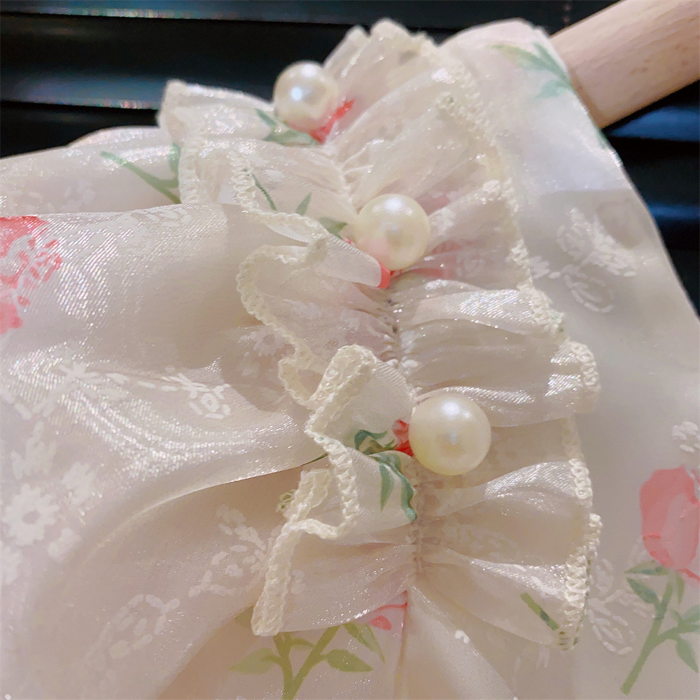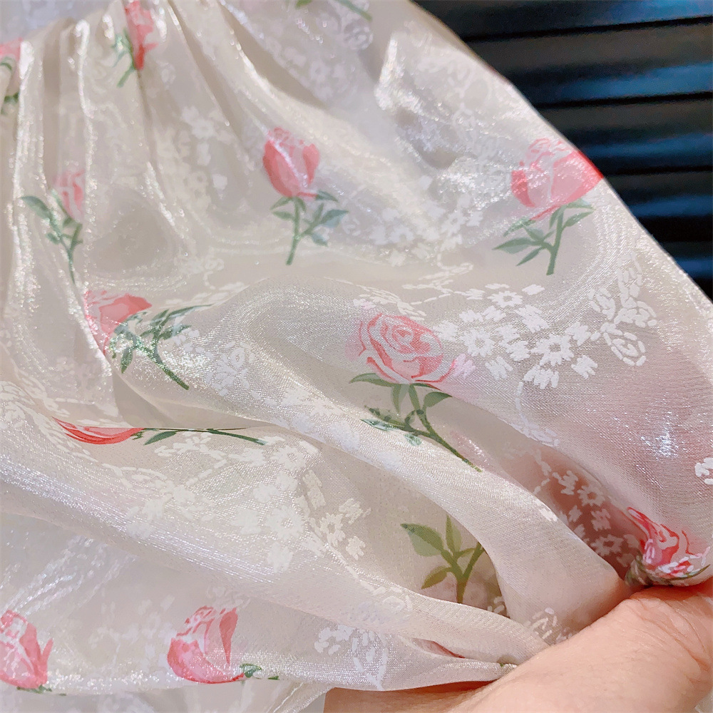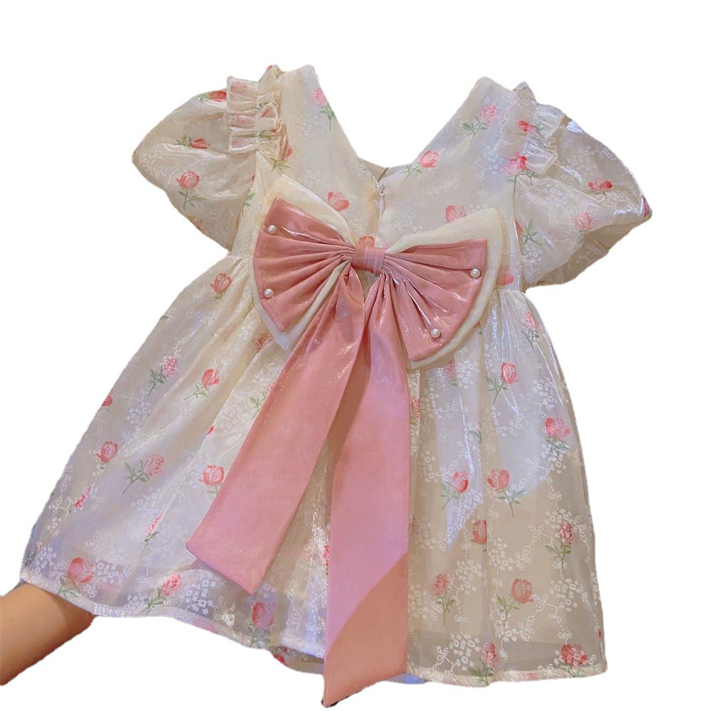 新品女童玫瑰提花亮片大方领泡泡短袖公主仙女裙2025夏装连衣裙