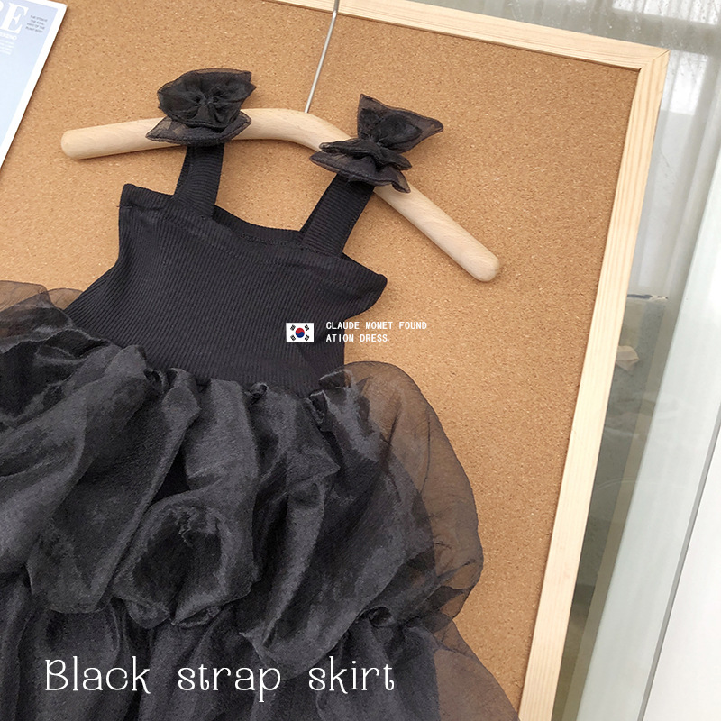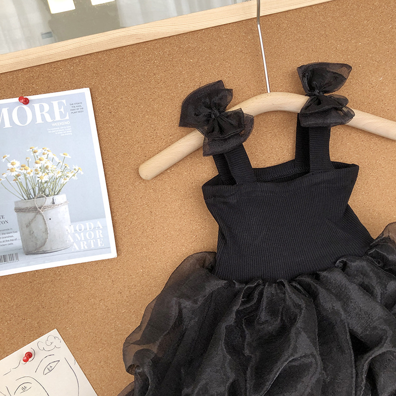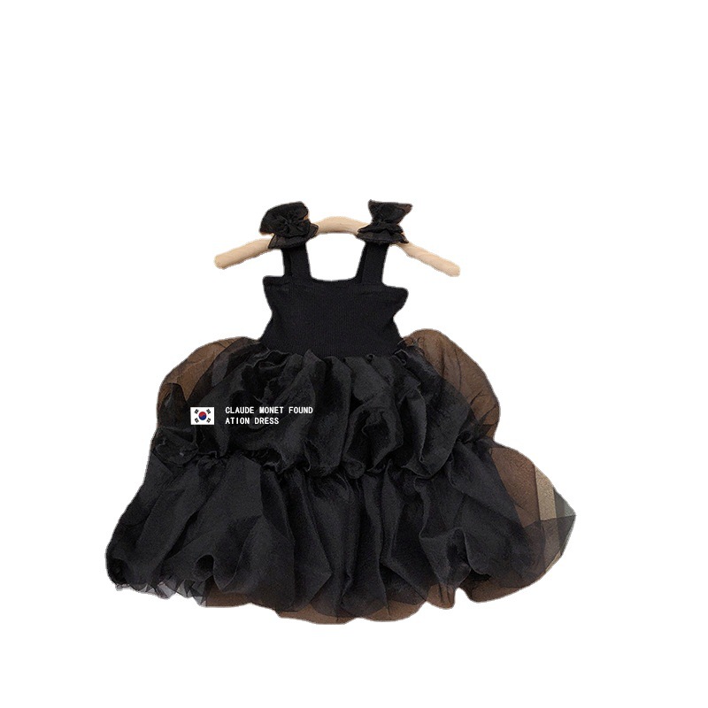 新品现货裙子2025夏季新款女童小蝴蝶纱裙黑色公主连衣裙