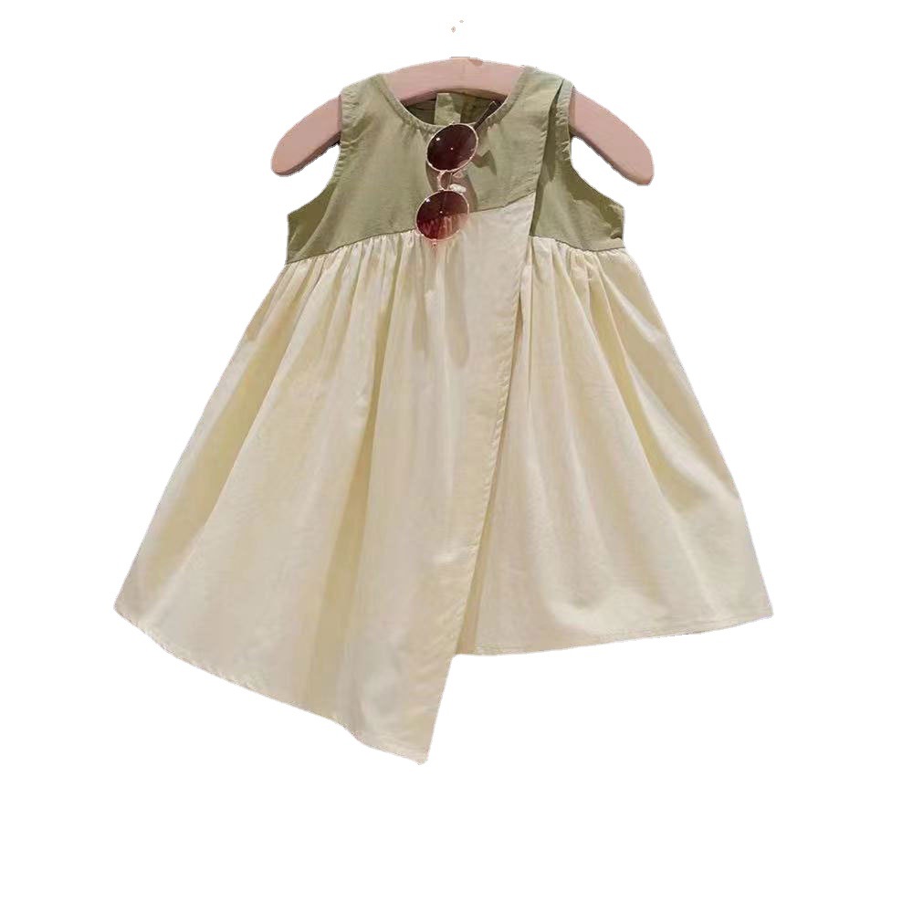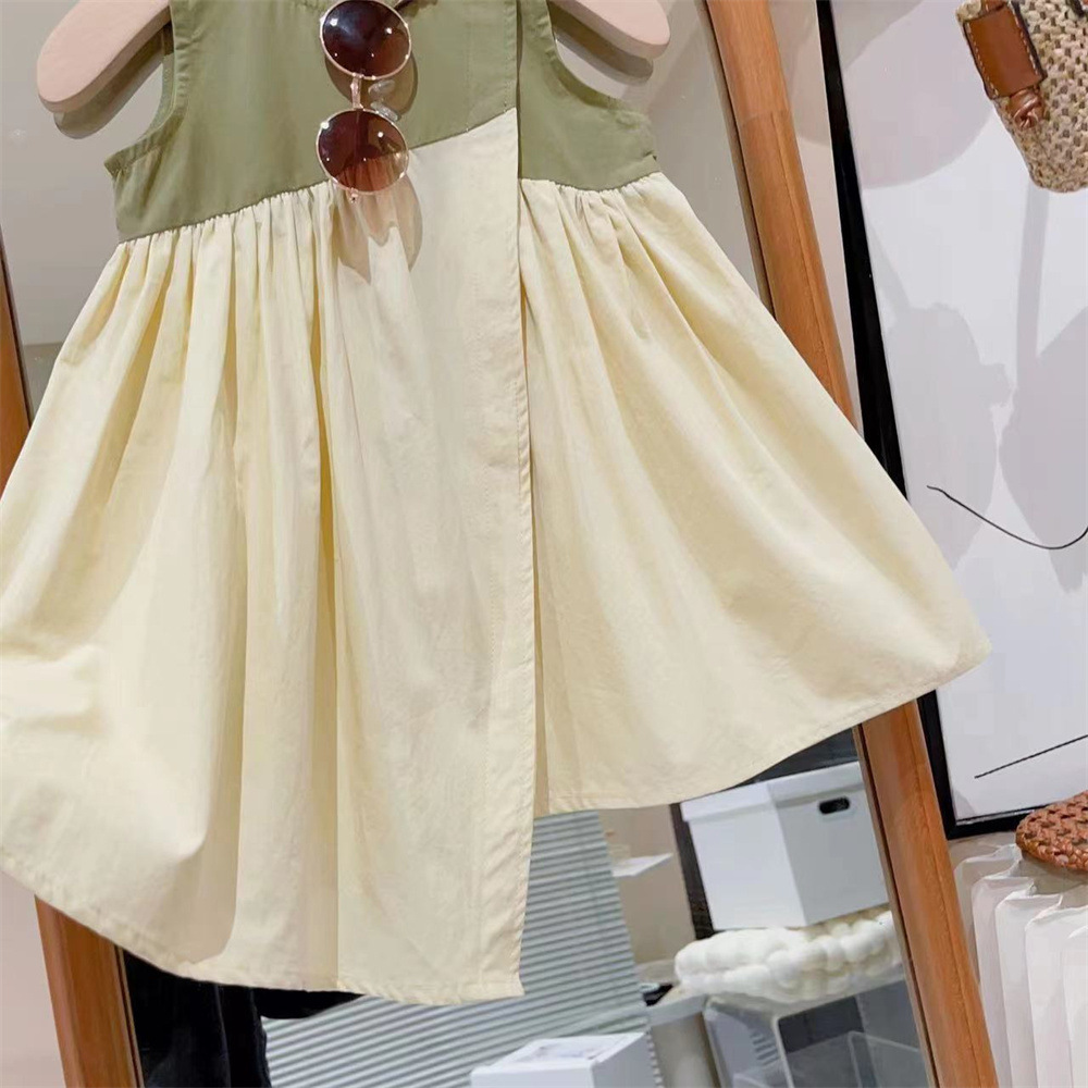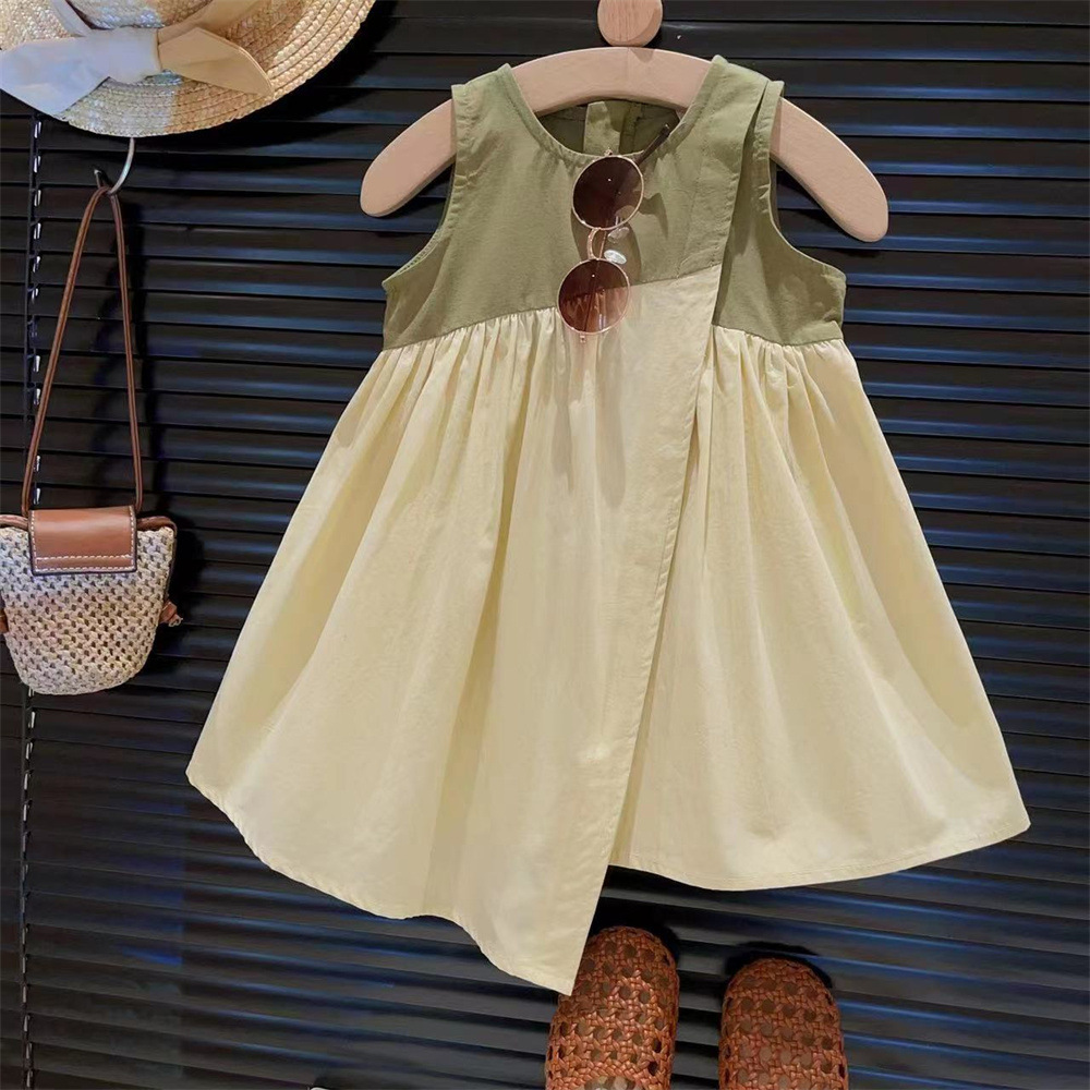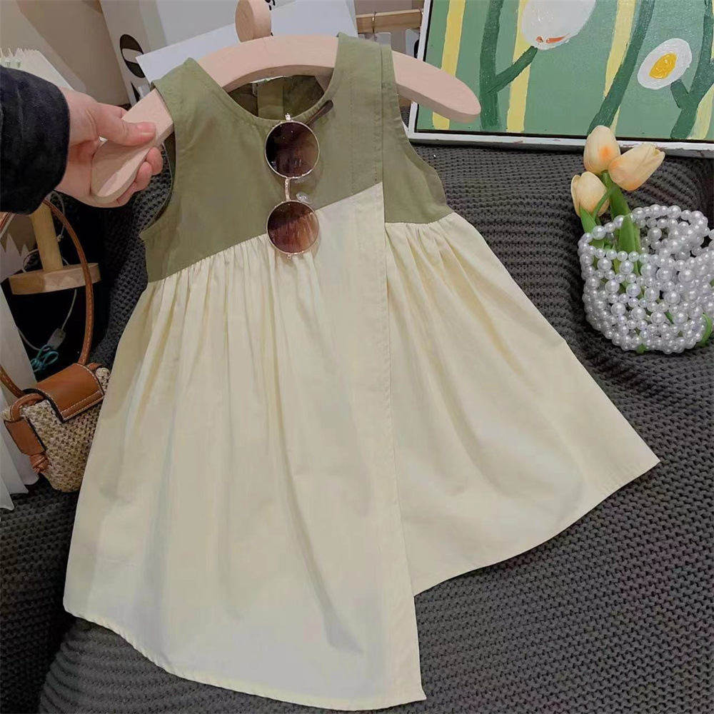 新品女童不规则撞色裁剪拼接个性洋气公主背心裙2025夏装连衣裙