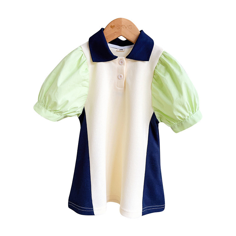 2025夏季新款拼接色polo衫裙休闲时尚洋气女童裙子新品小童连衣裙