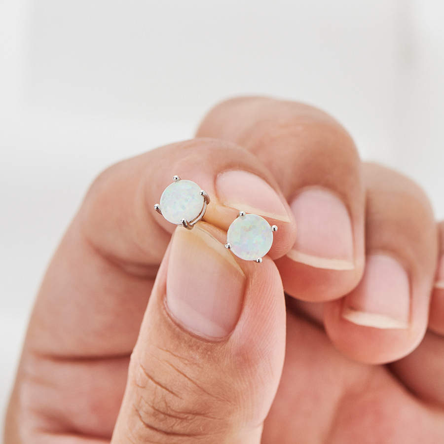 银色s925纯银个性时尚简约可爱蛋白石低过敏女士耳钉