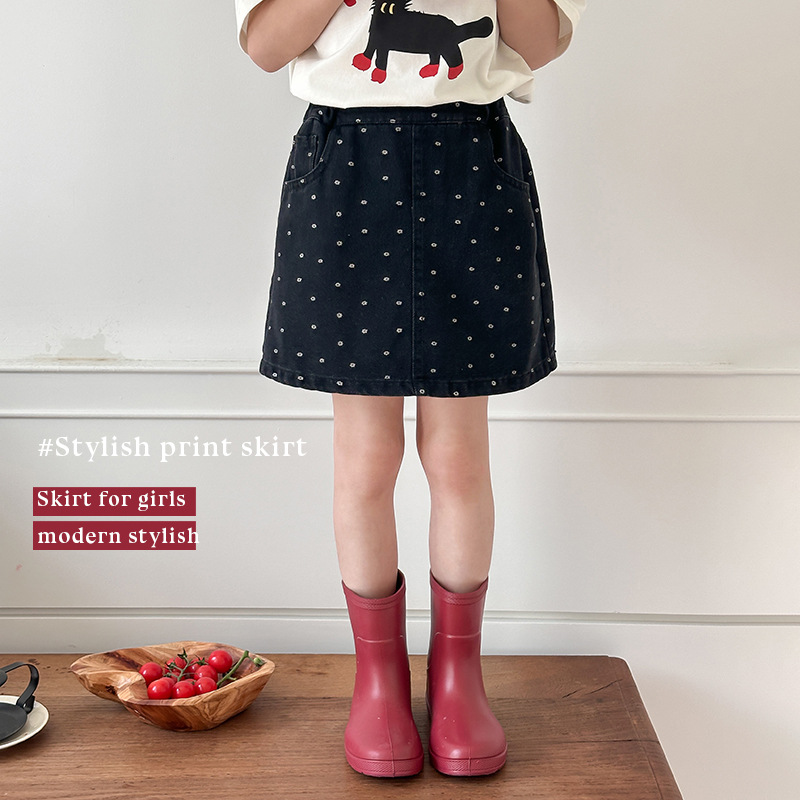 艾摩贝贝儿童含防走光内衬裙子时髦满印包臀牛仔短裙小碎花半身裙