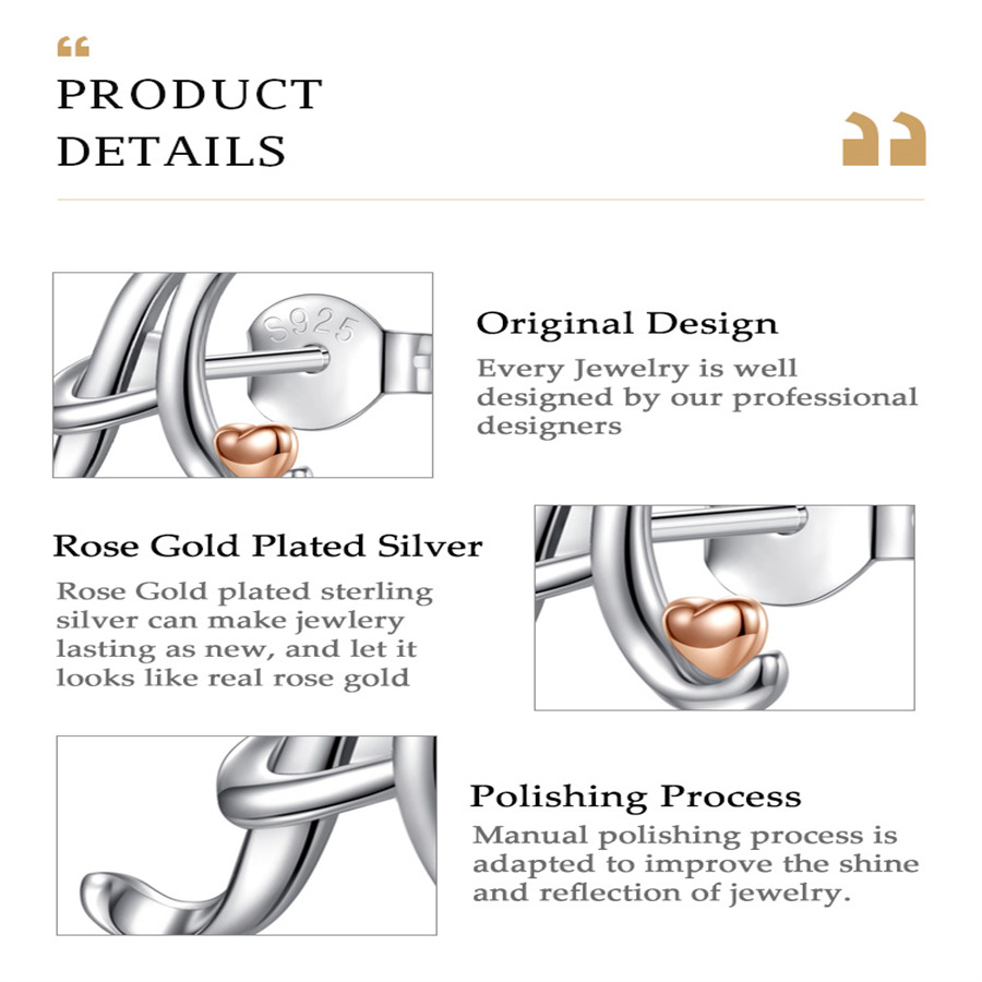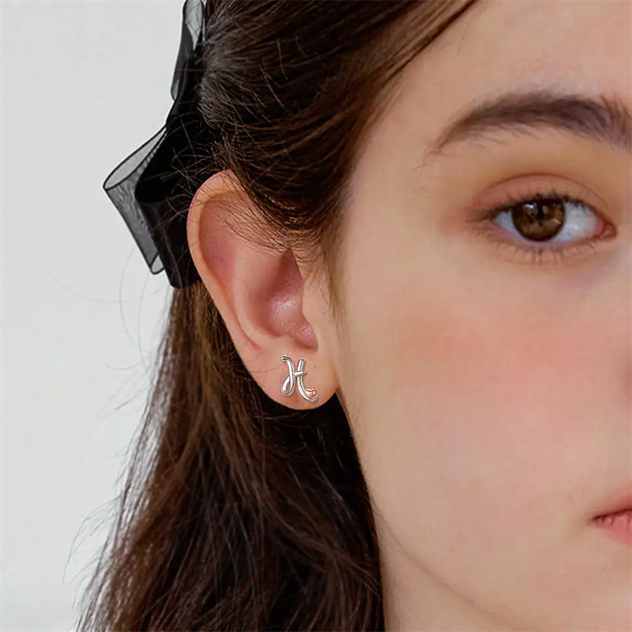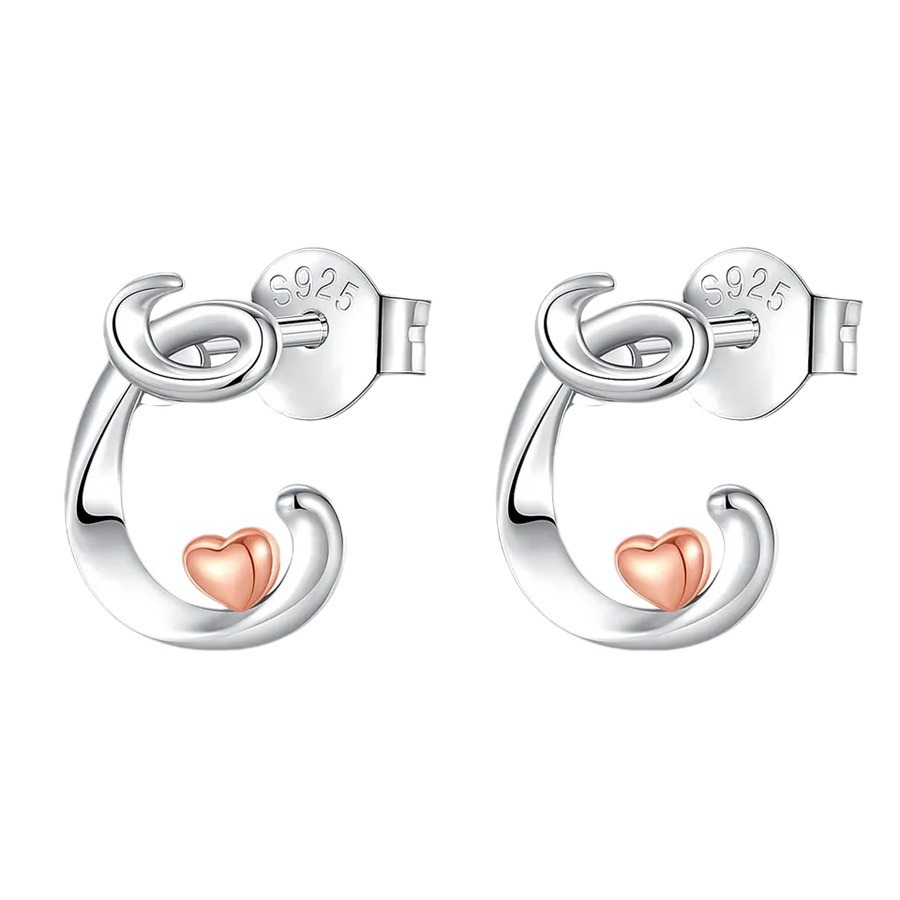 925纯银耳饰 时尚个性20字母镶爱心 女士个性气质 低过敏纯银耳钉