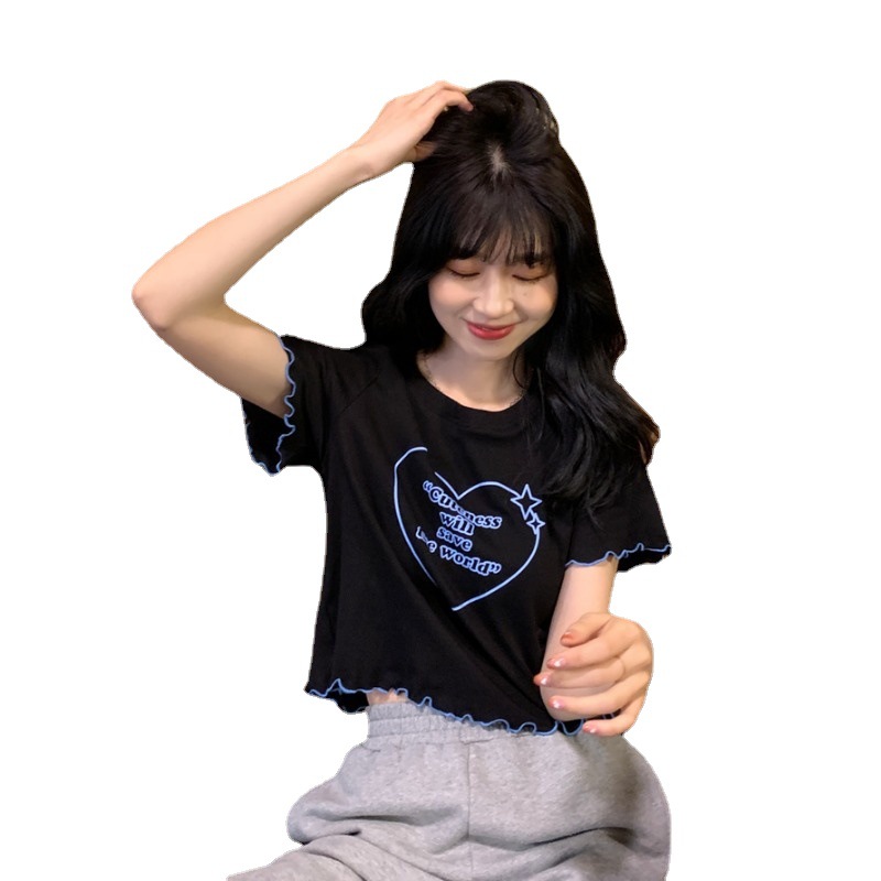 网红短款黑色T恤女新款夏季韩版修身辣妹穿搭减龄短袖上衣ins