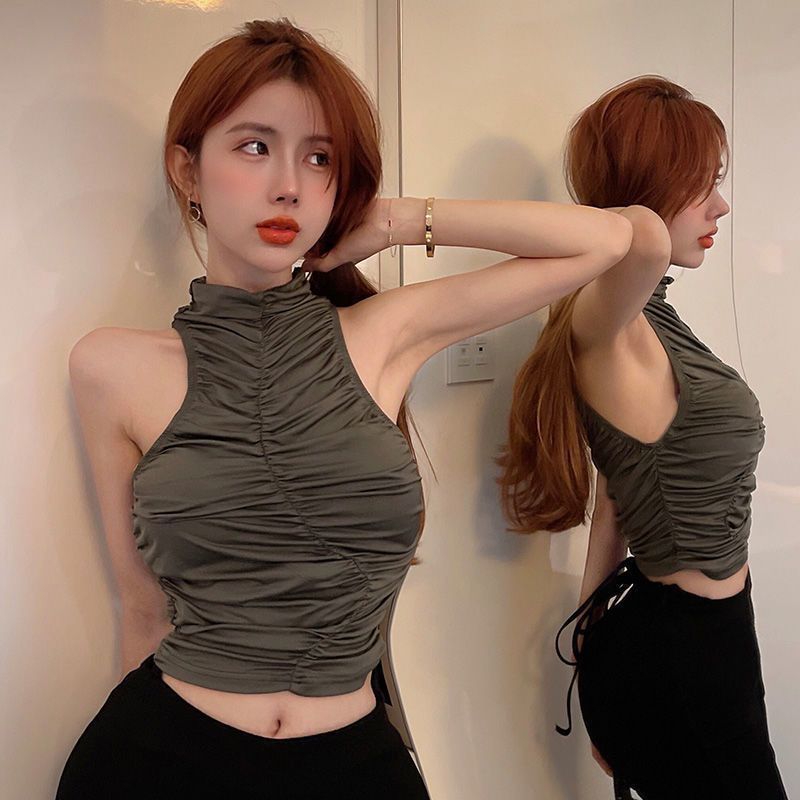 美式小吊带背心女外穿夏季别致美背西装内搭打底法式挂脖短款上衣