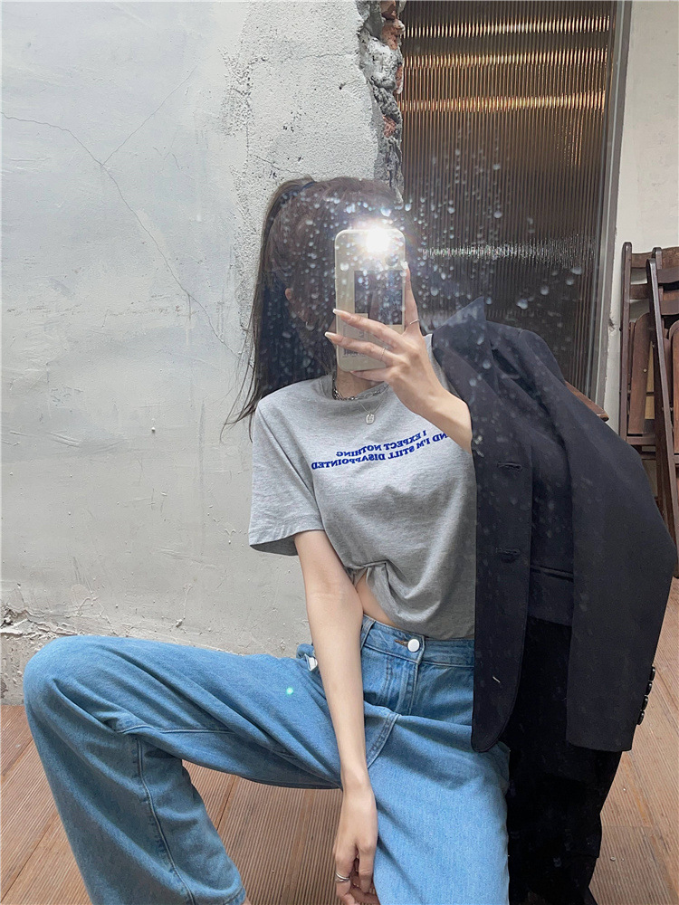 夏季韩版新款宽松短款小心机露脐字母印花超火短袖T恤上衣女