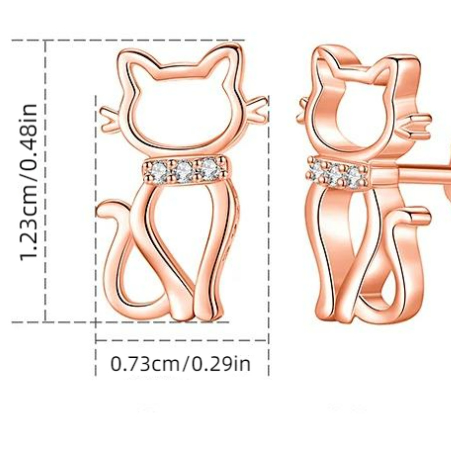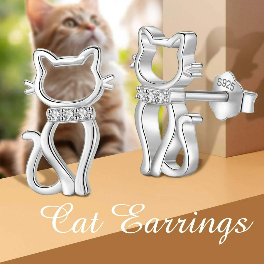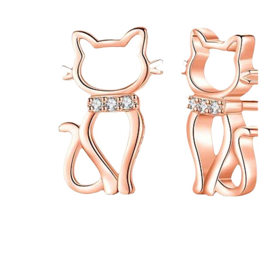 亚马逊热卖925纯银时尚甜美猫猫镶钻耳钉 个性气质防过敏纯银耳饰