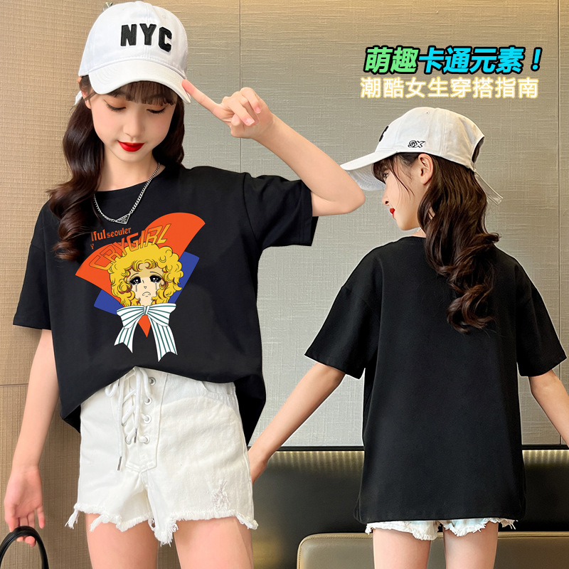 女童短袖T恤纯棉夏季新款中大童女孩儿童潮流半袖t休闲宽松上衣潮