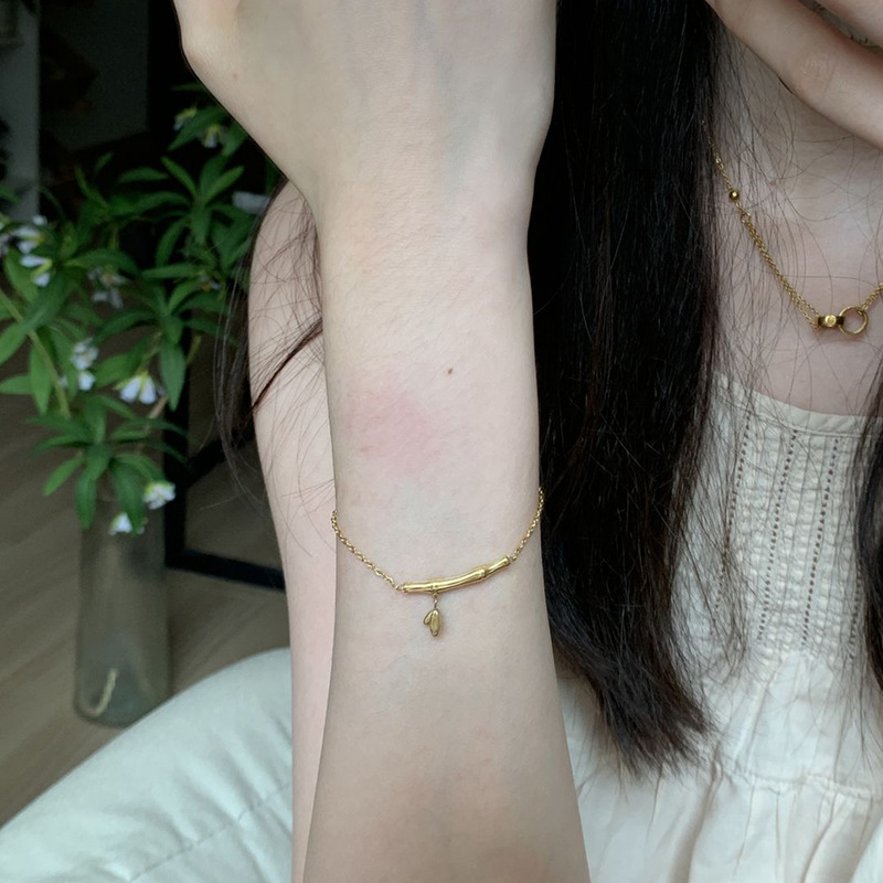 小红书同款竹节细链戴出清冷感叠戴金色小众简约冷淡手链一件代发